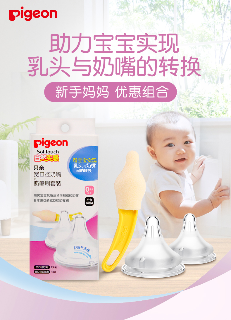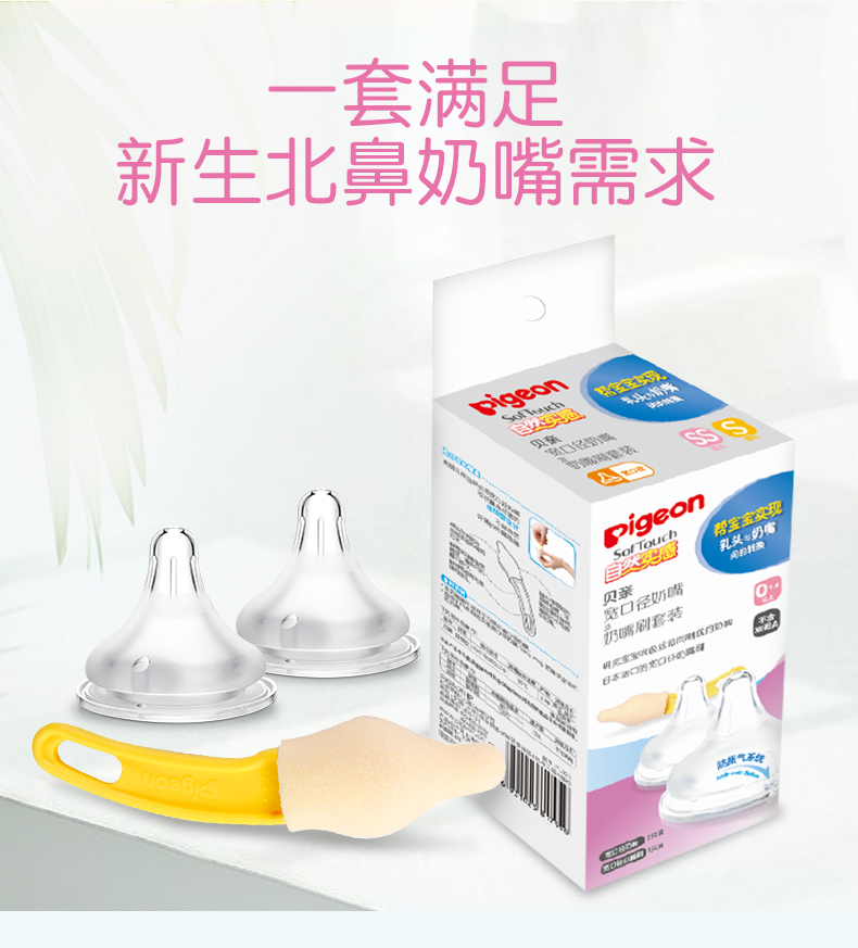 贝亲 宽口径奶嘴奶嘴刷套装SS号+S号PL323