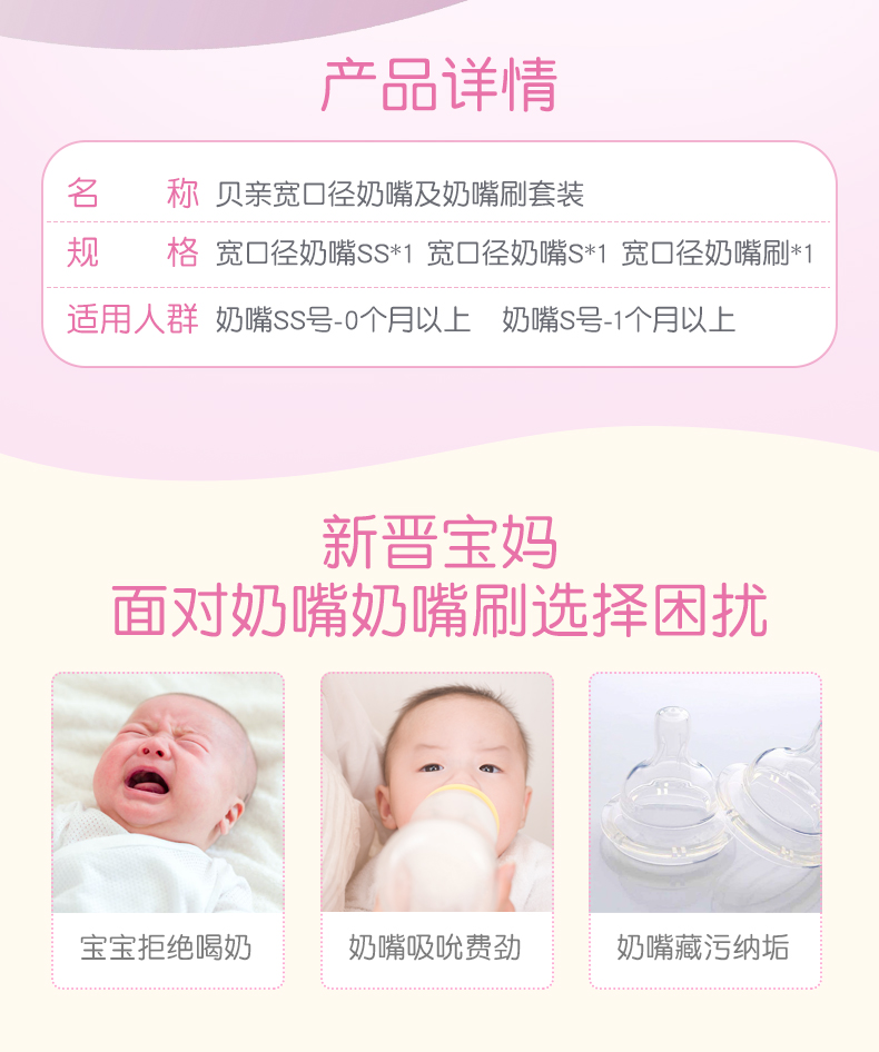 商品名称:贝亲 宽口径奶嘴奶嘴刷套装SS号+S号PL323