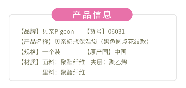 商品名称:贝亲 奶瓶保温袋 黑色圆点花纹款 06031