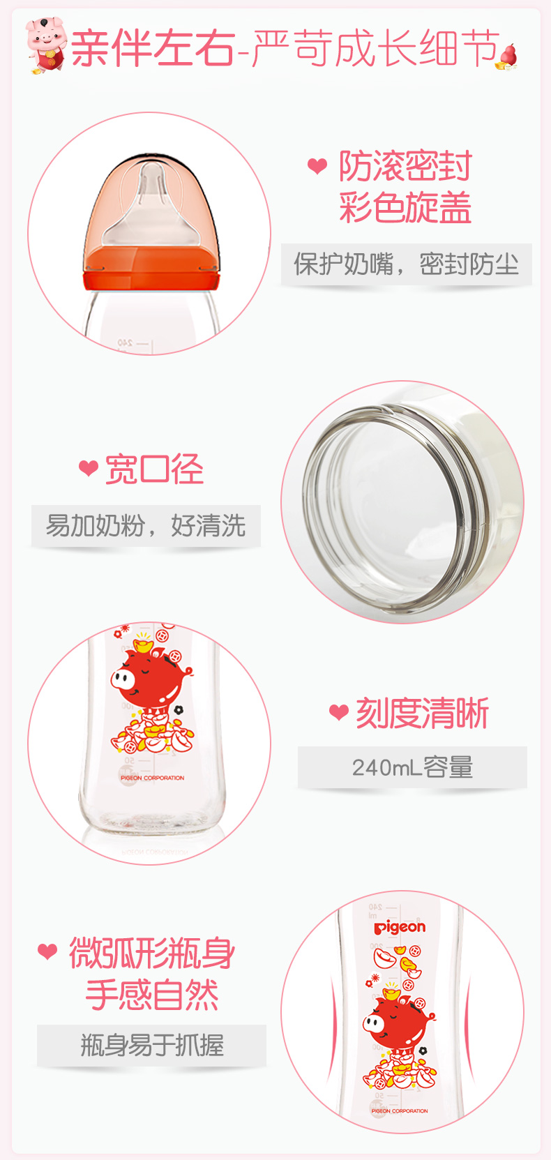 商品名称:贝亲 宽口径玻璃奶瓶猪年生肖奶瓶M号奶嘴240ml
