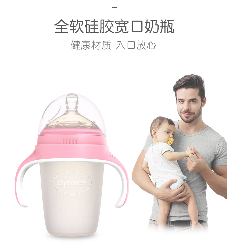 商品名称:爱因美 硅胶奶瓶全软宽口径新生婴儿防账气防摔耐摔奶瓶带手柄吸管