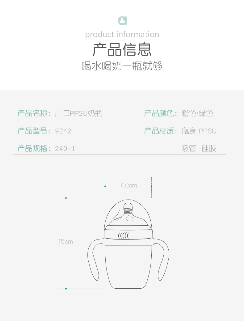商品名称:爱因美 宽口径PPSU奶瓶耐摔带吸管硅胶奶嘴新生儿宝宝广口塑料奶瓶