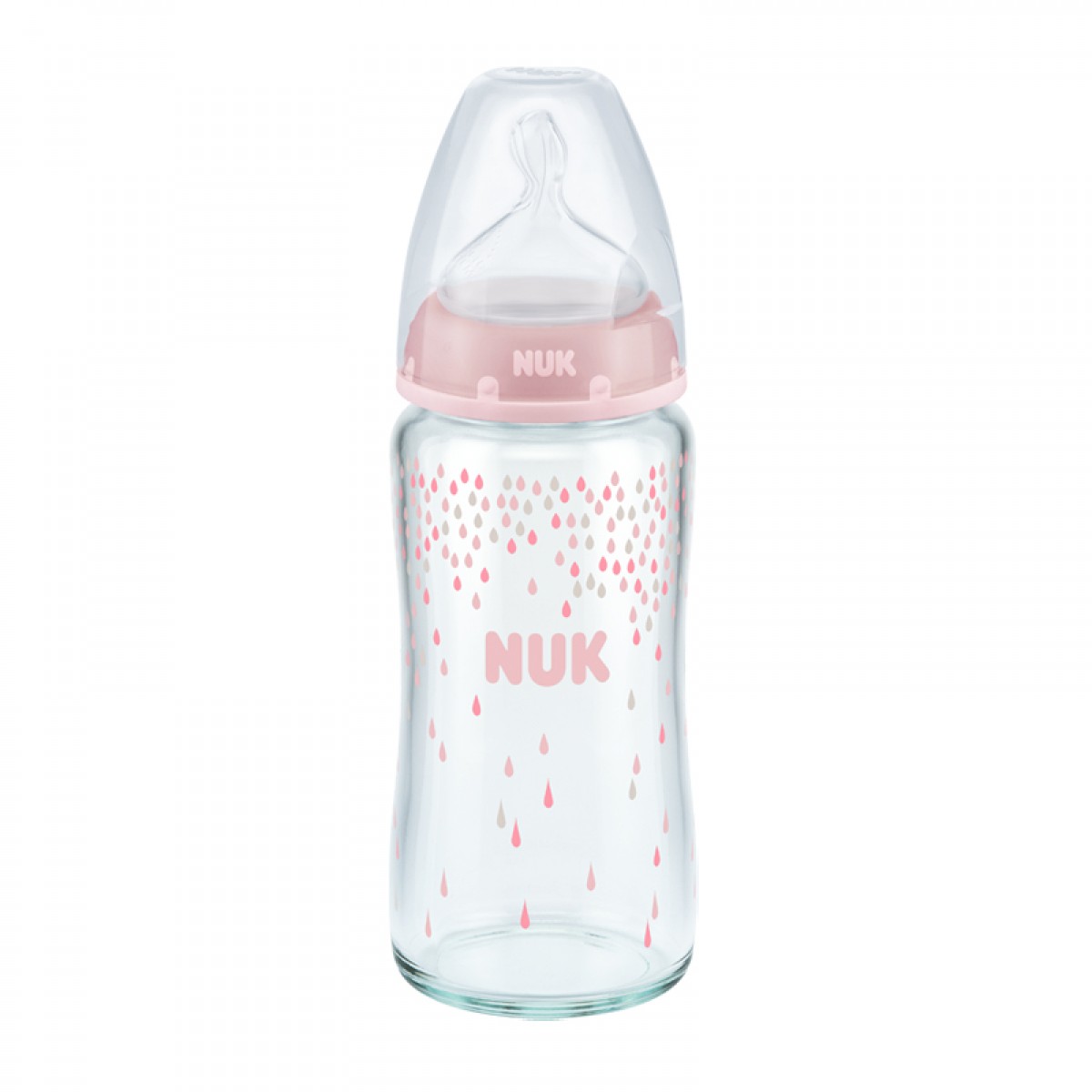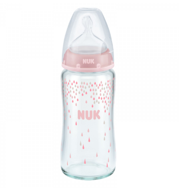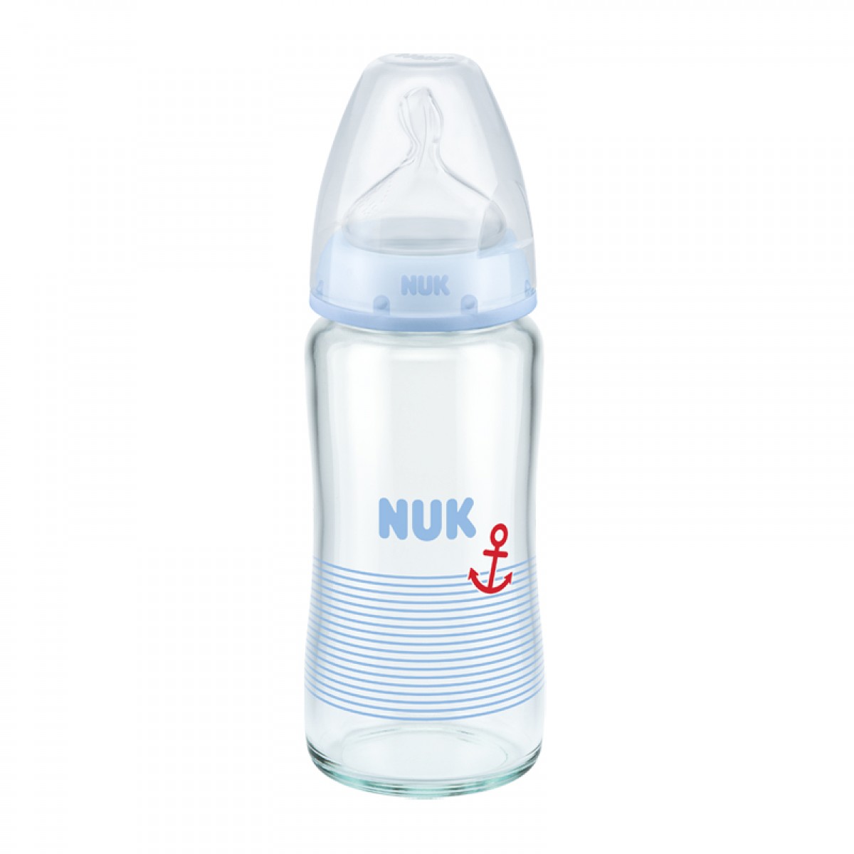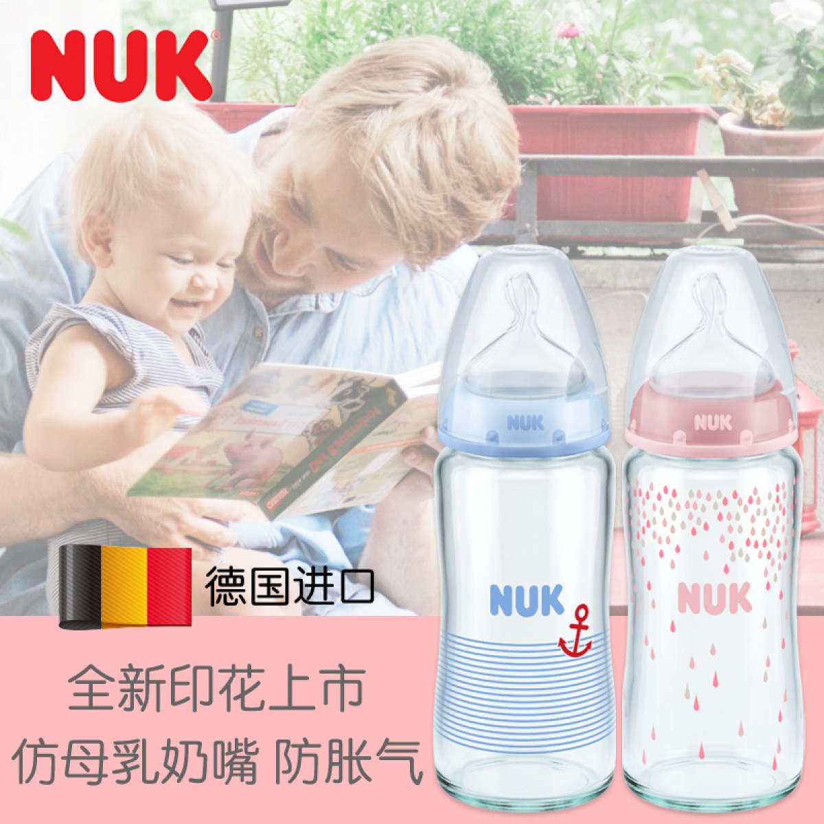 德国NUK 奶瓶NUK宽口径彩色玻璃奶瓶240ml带硅胶奶嘴1号或2号奶瓶