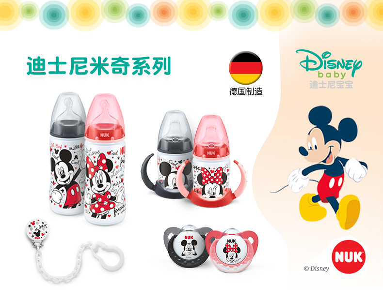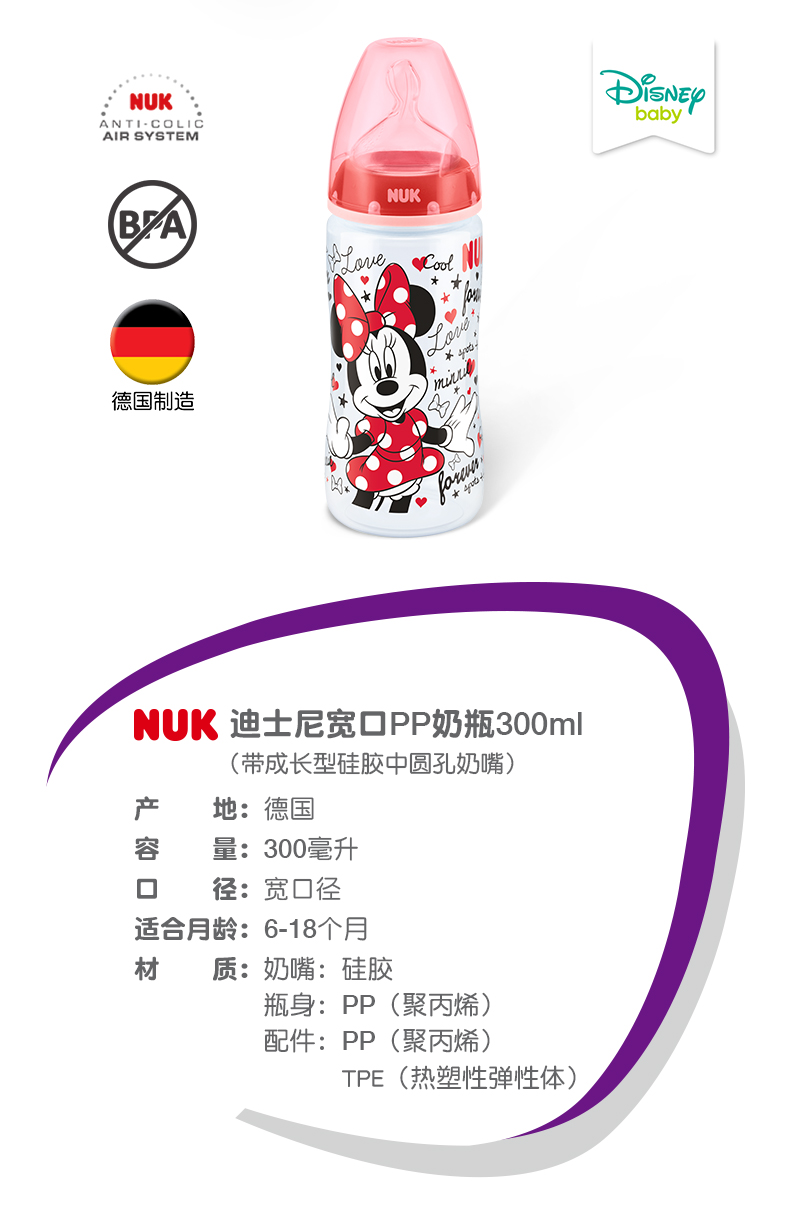 商品名称:NUK 迪士尼米奇系列宽口PP奶瓶300ml带硅胶2号中圆孔NUKpp奶瓶