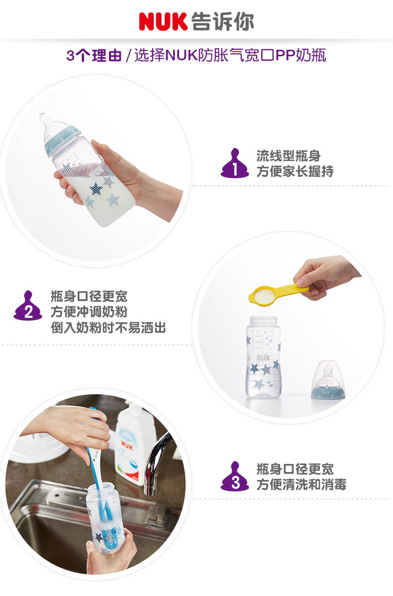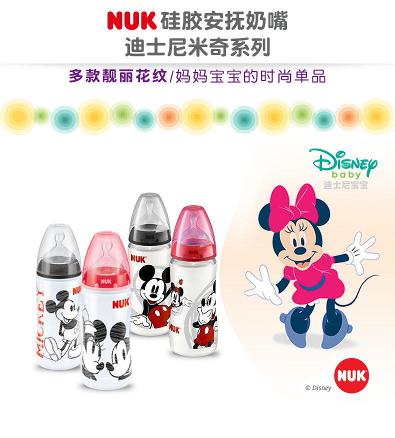 NUK 迪士尼米奇系列宽口PP奶瓶300ml带硅胶2号中圆孔NUKpp奶瓶
