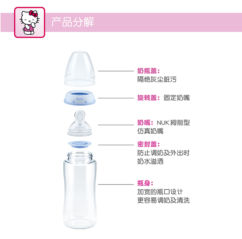 商品名称:NUK 奶瓶NUK宽口PPHello Kitty奶瓶300ml带6-18个月硅胶奶嘴