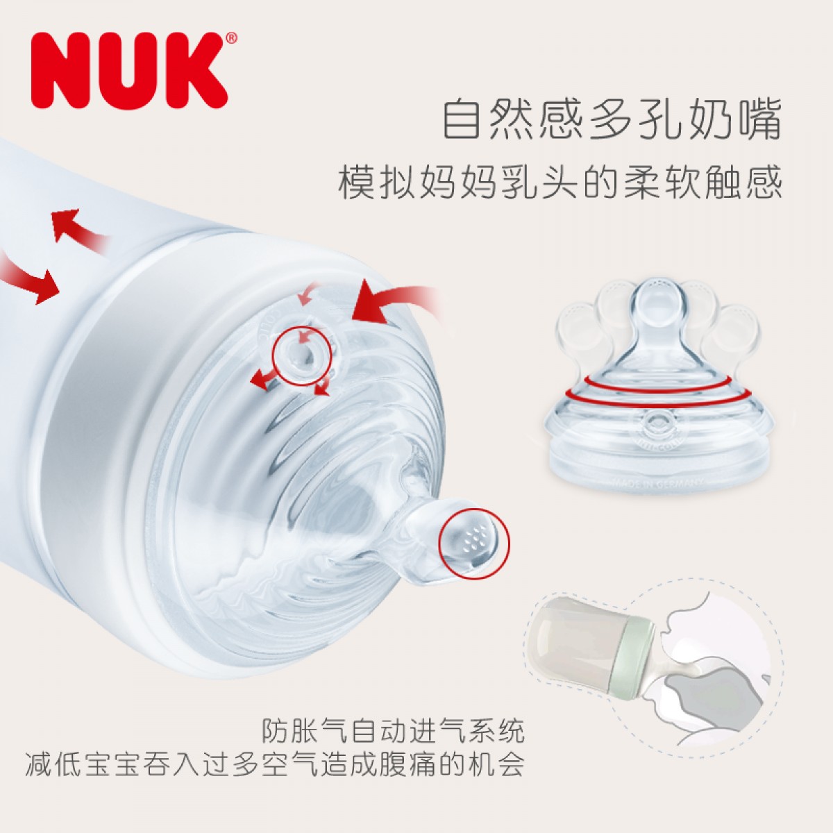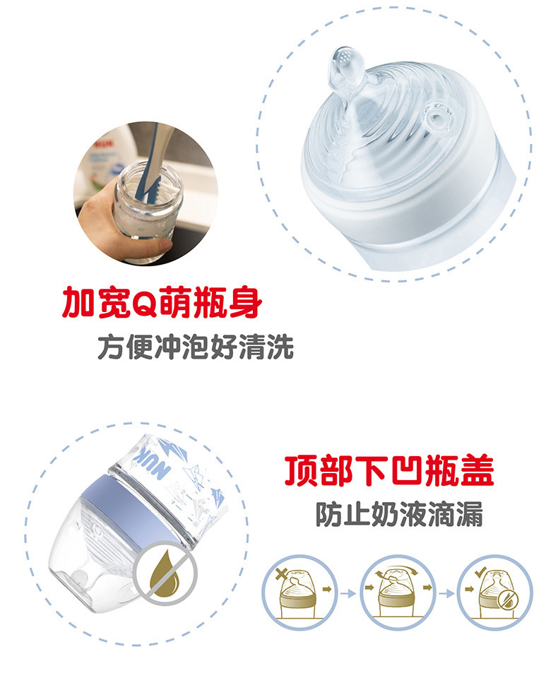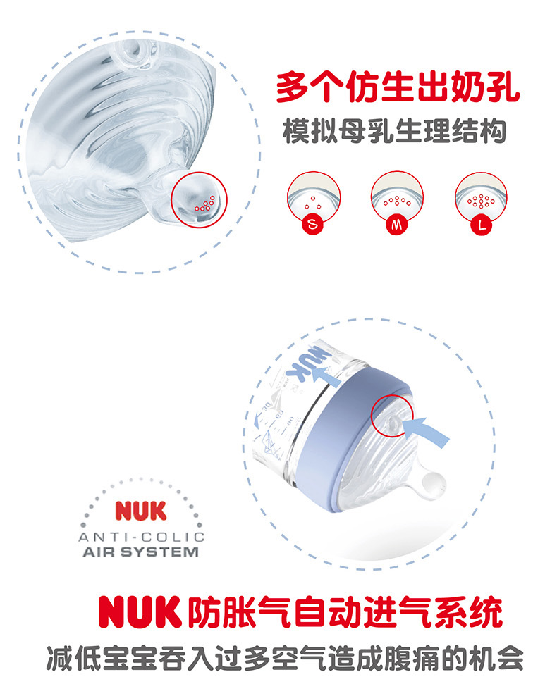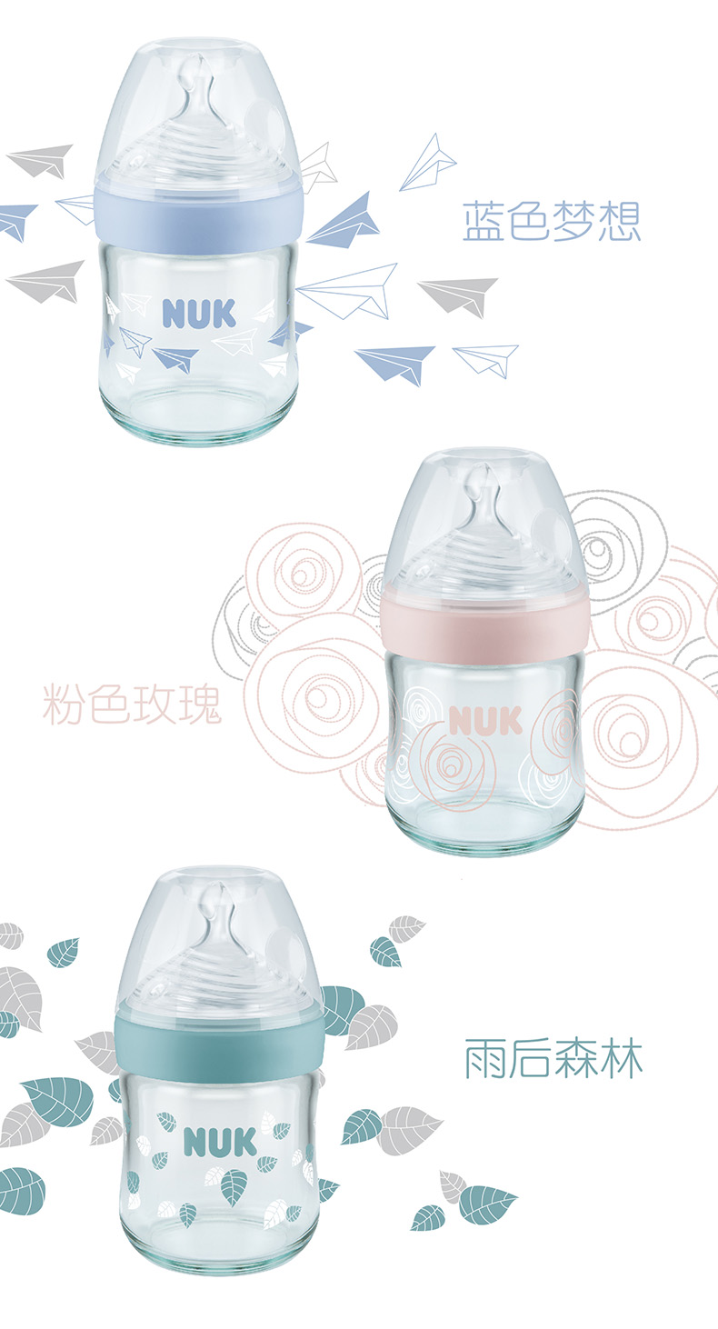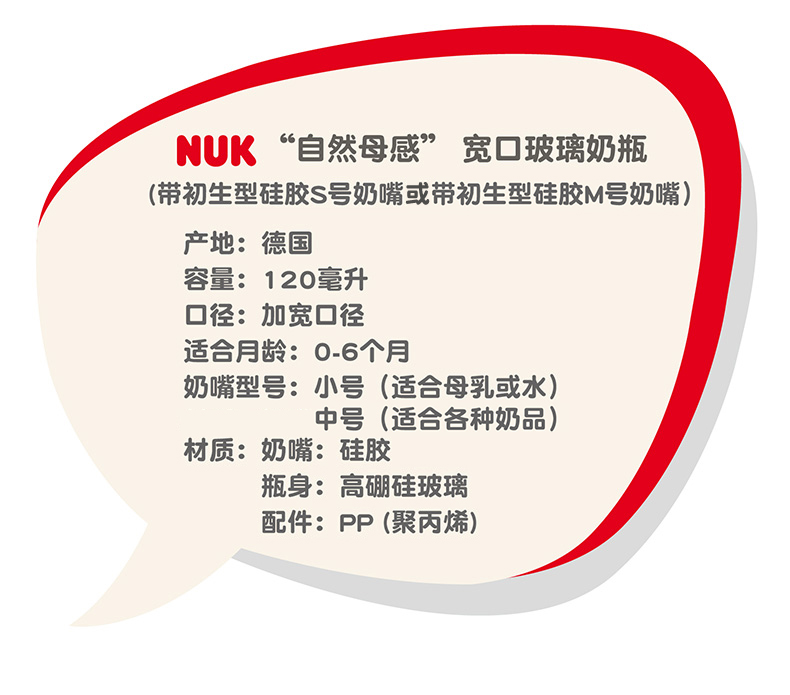 商品名称:NUK 自然母感120ml宽口玻璃奶瓶带初生型0-6个月S号或M号