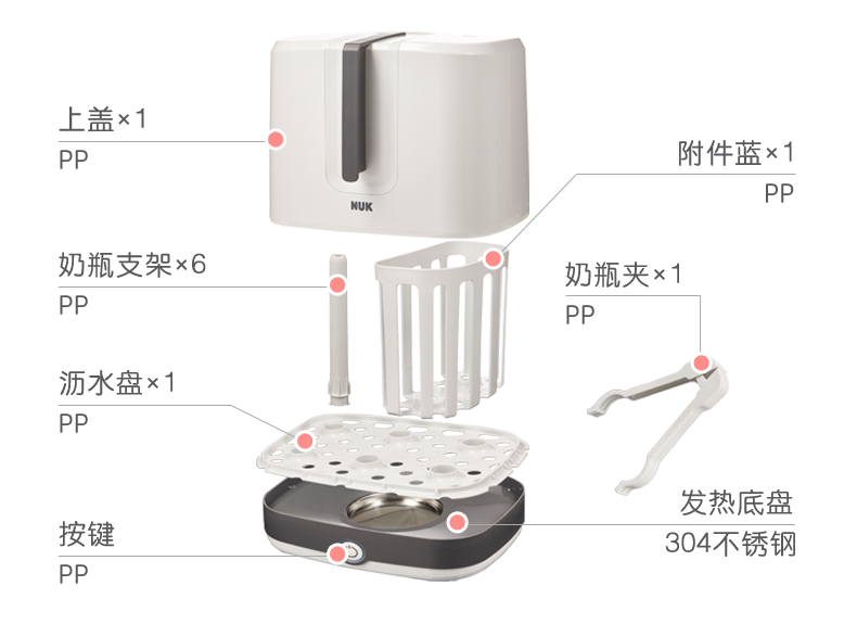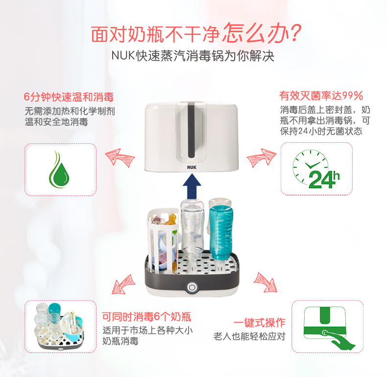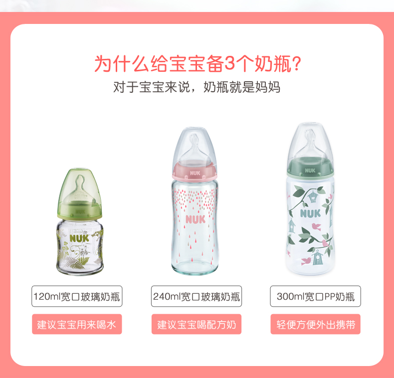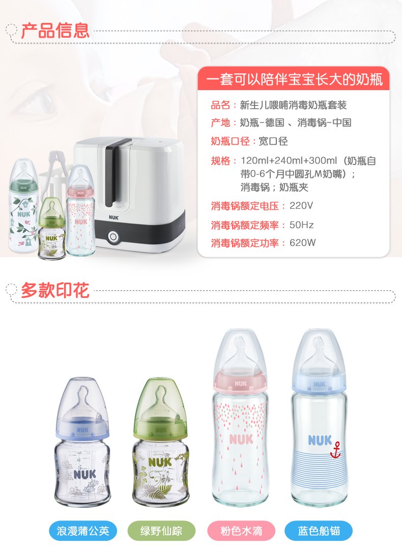 商品名称:NUK 新生儿喂哺消毒玻璃奶瓶套装NUK奶瓶NUKpp奶瓶NUK消毒锅大套装