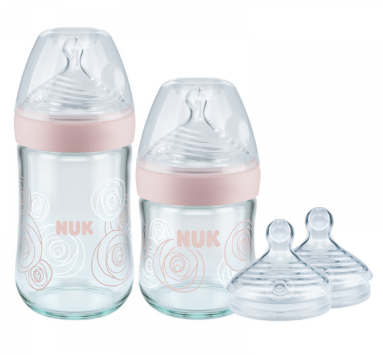 NUK 自然母感宽口玻璃奶瓶奶嘴3件套0-6个月初生婴儿奶瓶套装