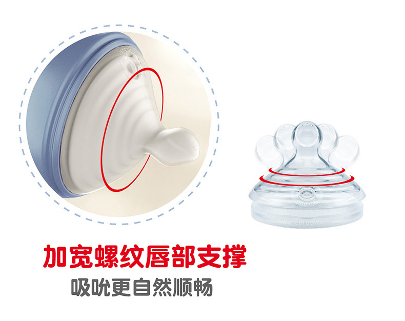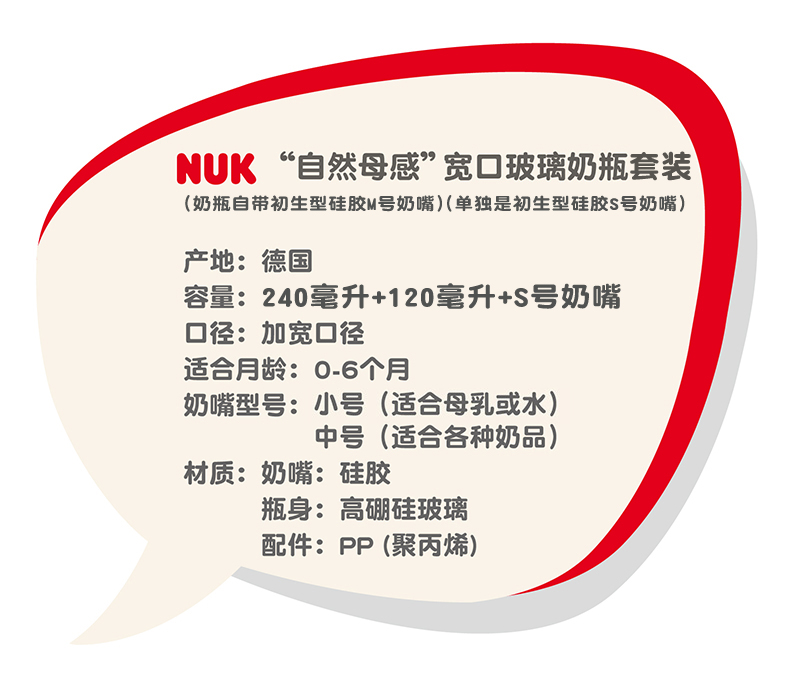 商品名称:NUK 自然母感宽口玻璃奶瓶奶嘴3件套0-6个月初生婴儿奶瓶套装
