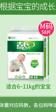 商品名称:吉氏 零感薄纸尿裤M码58片超薄透气男女宝宝新生儿婴儿干爽尿不湿