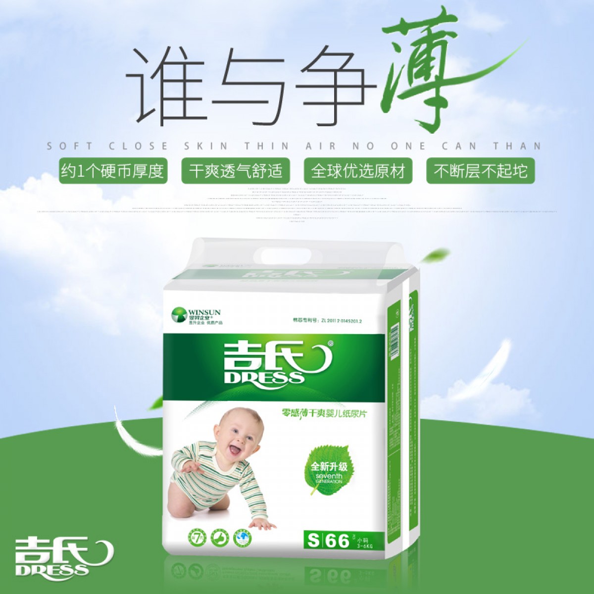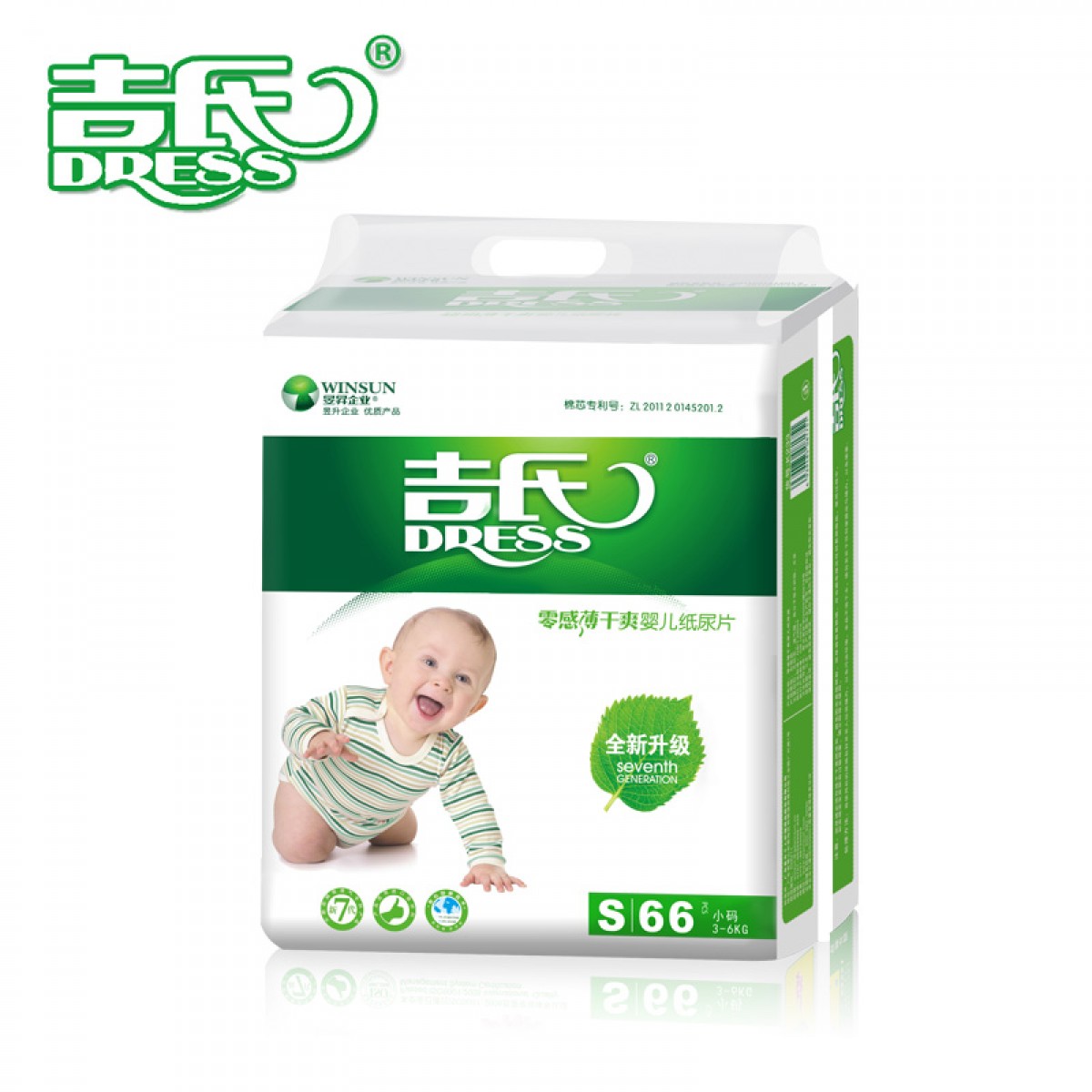 吉氏 零感薄纸尿片S小码66片 新生婴儿男女宝宝超薄干爽透气尿不湿