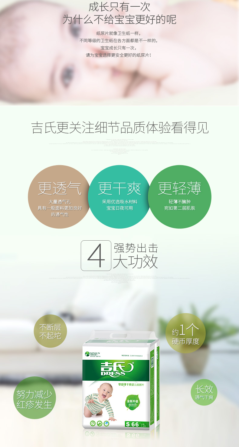 商品名称:吉氏 零感薄纸尿片S小码66片 新生婴儿男女宝宝超薄干爽透气尿不湿