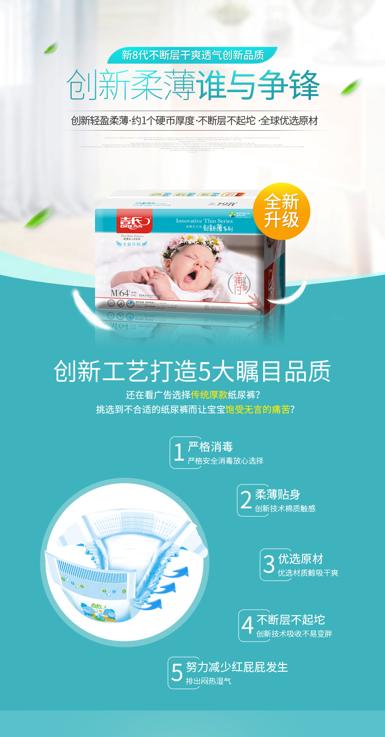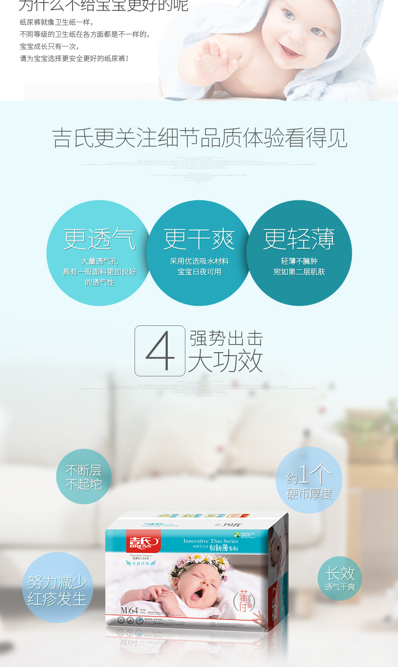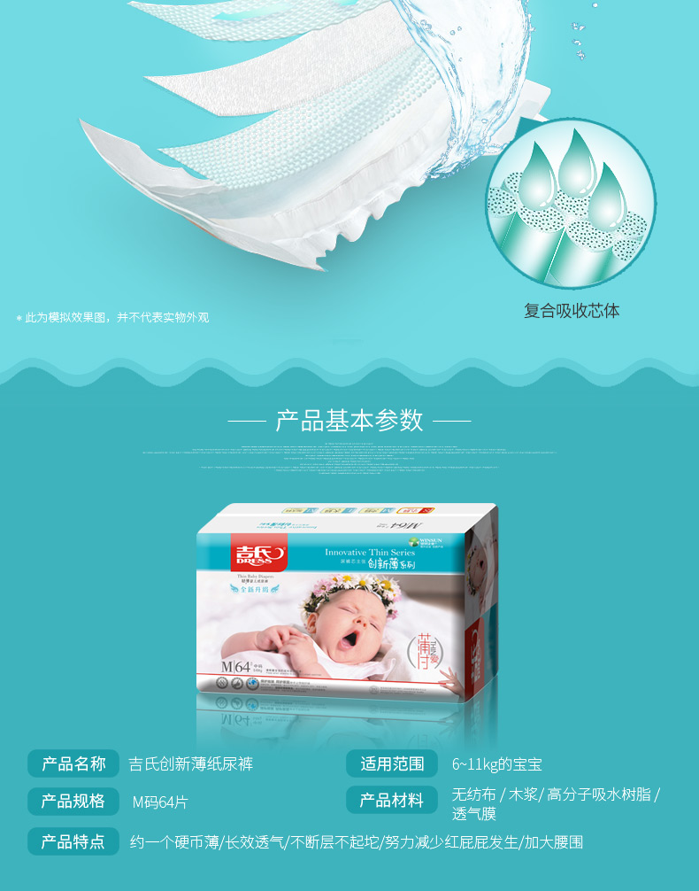 商品名称:吉氏 创新薄纸尿裤M64新生儿宝宝轻薄尿不湿干爽透气纸尿布
