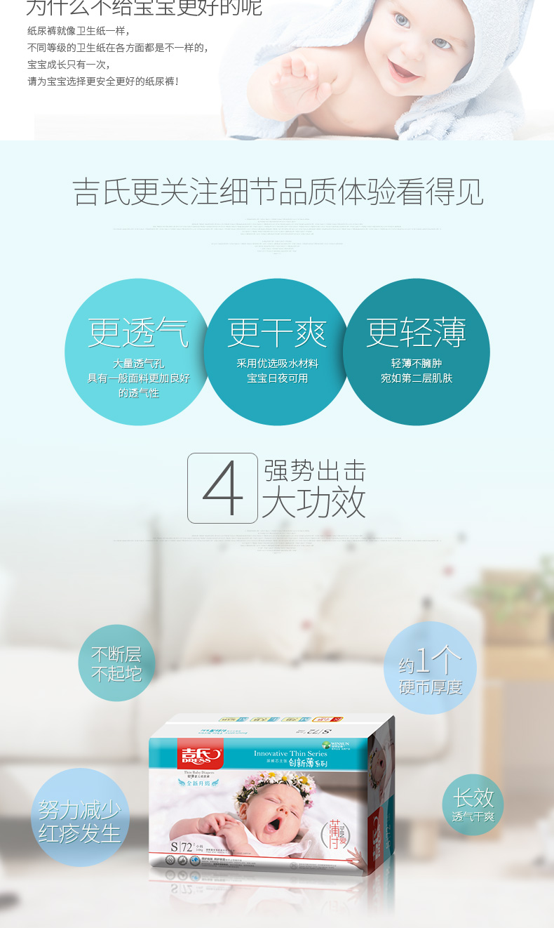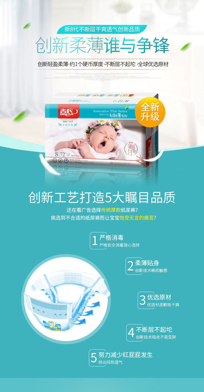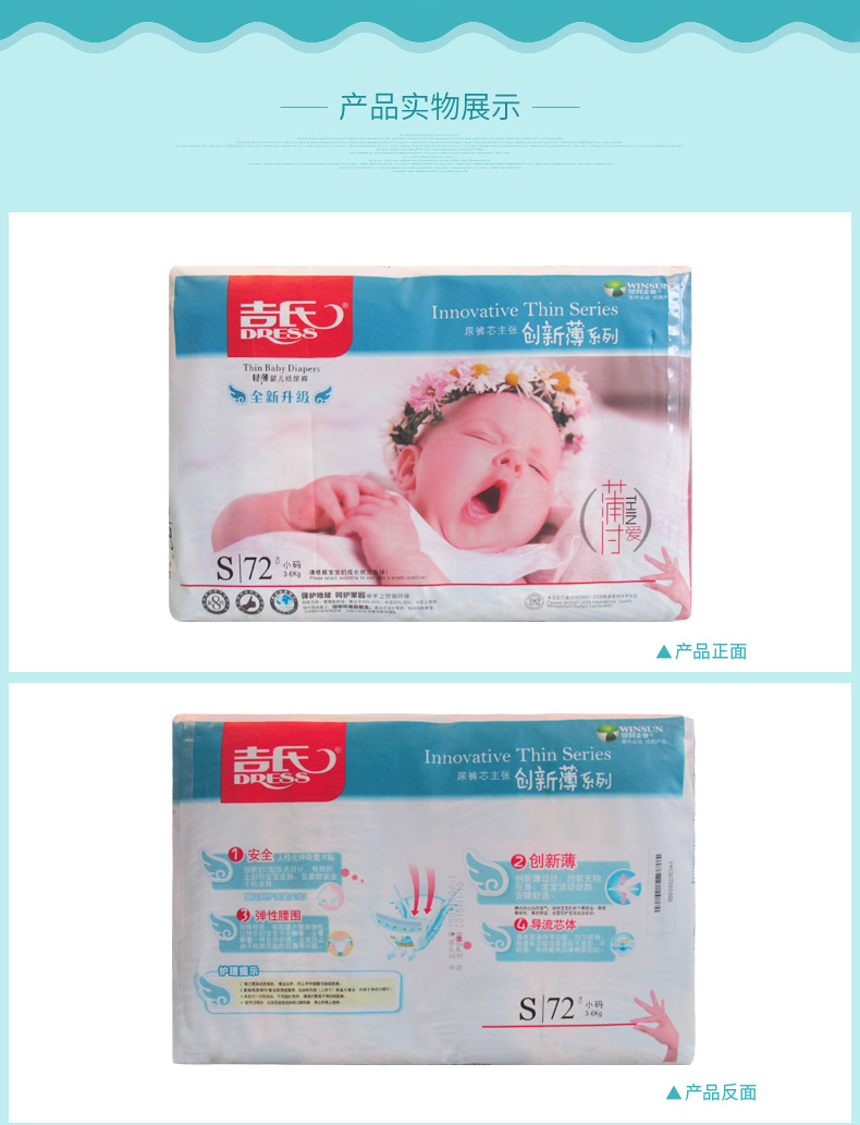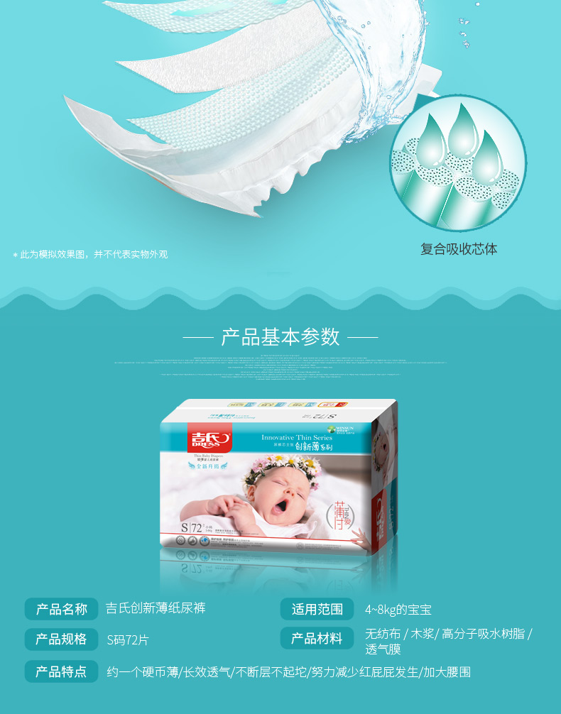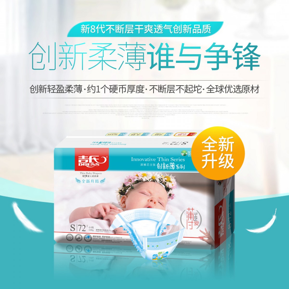商品名称:吉氏 创新薄婴儿小号尿不湿S72新生儿纸尿裤初生轻薄透气干爽尿裤S