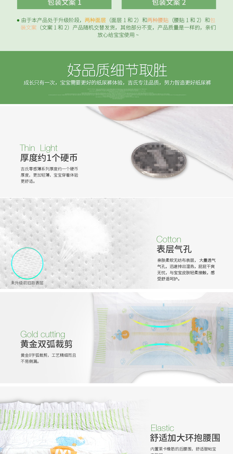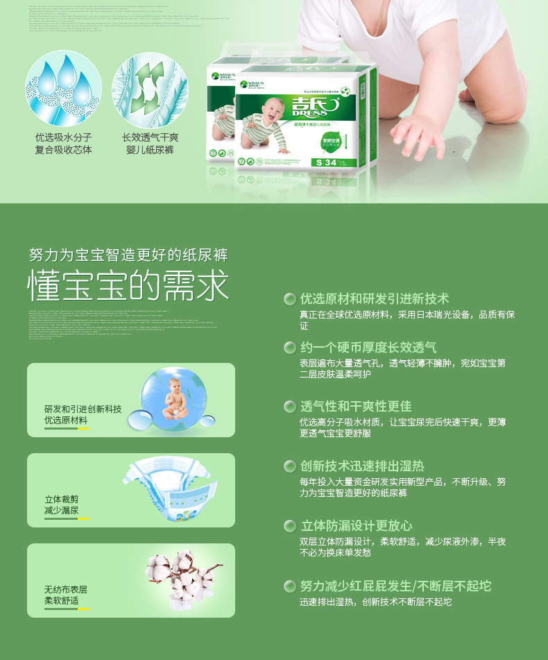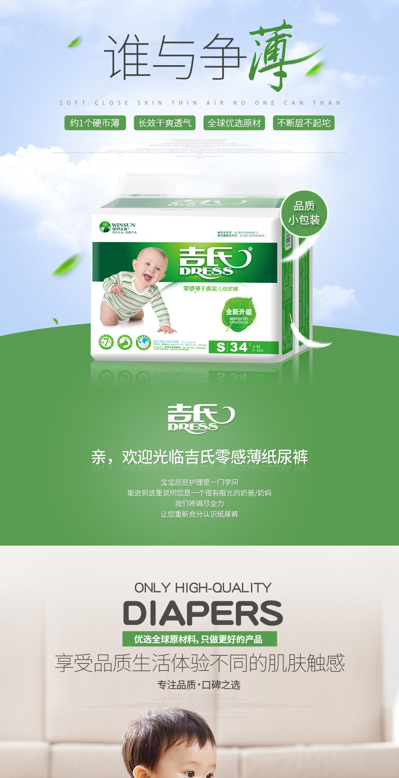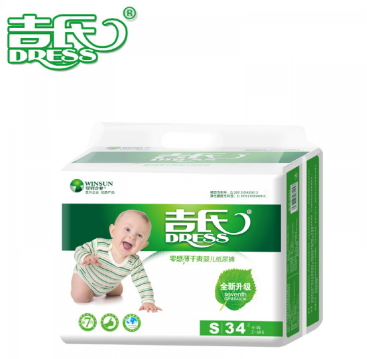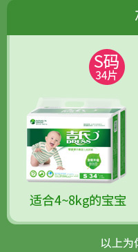 吉氏 零感薄婴儿纸尿裤S34新生儿初生尿不湿小号轻薄透气干爽尿裤S