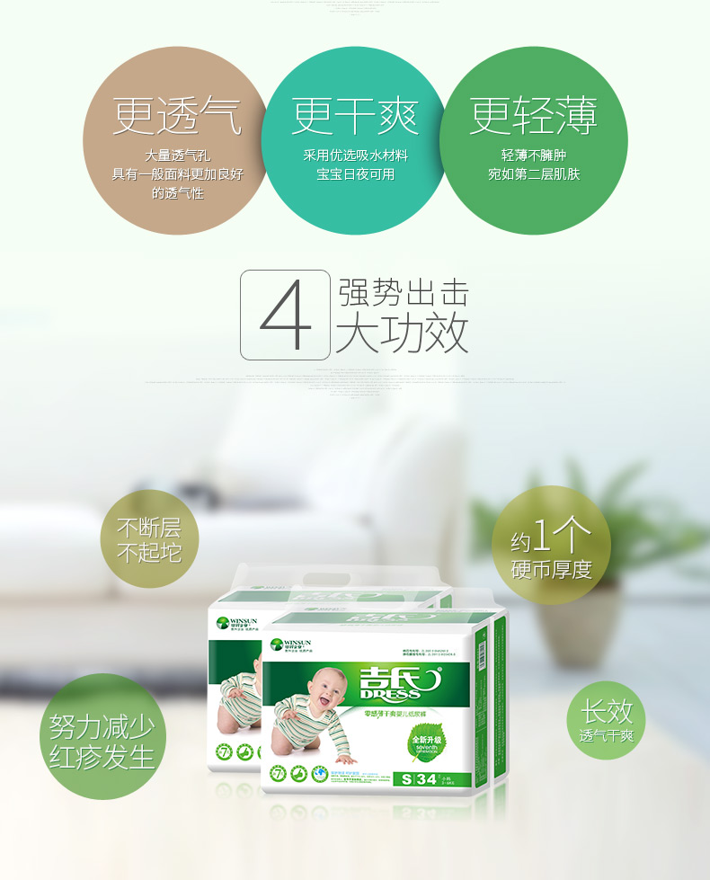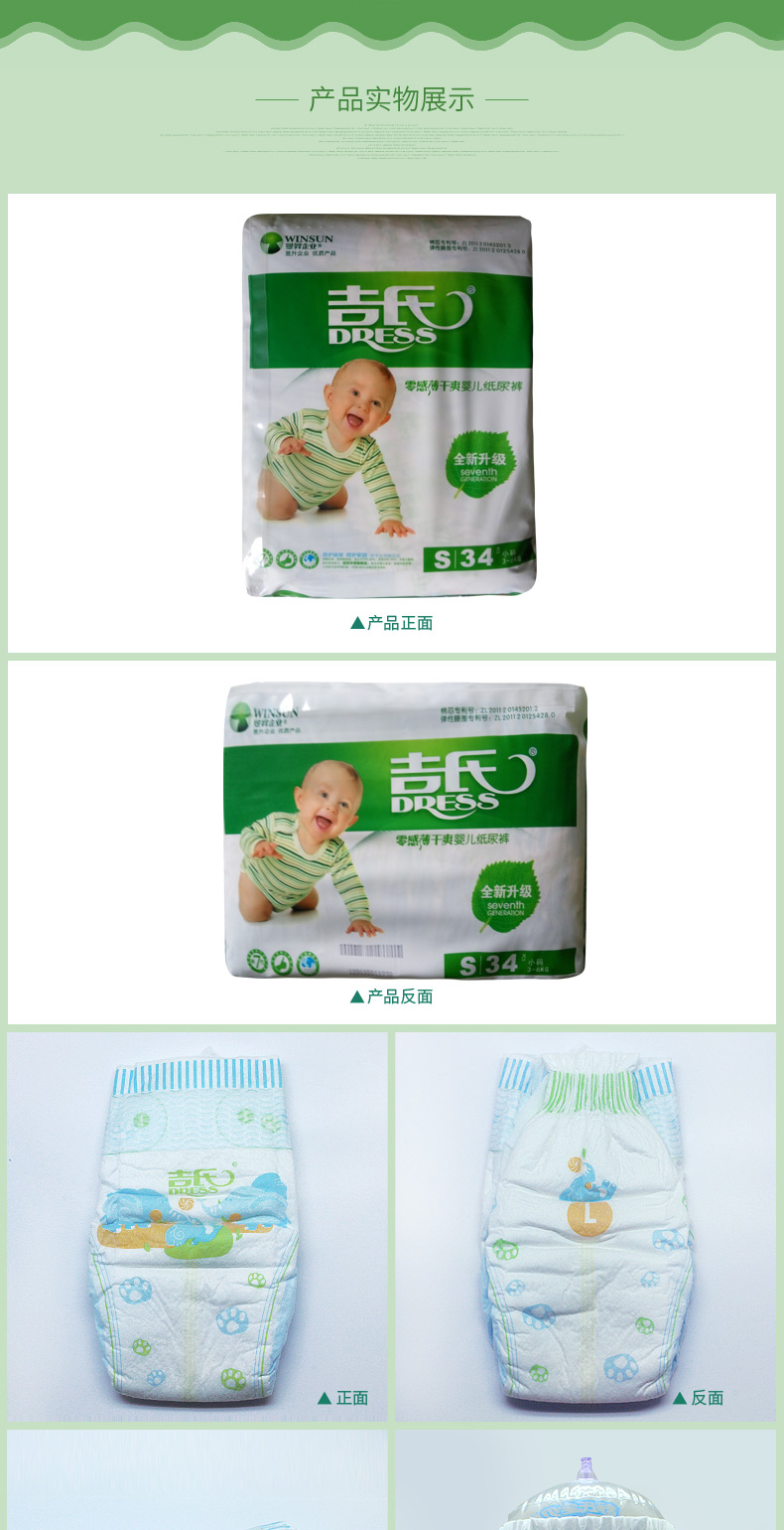 商品名称:吉氏 零感薄婴儿纸尿裤S34新生儿初生尿不湿小号轻薄透气干爽尿裤S