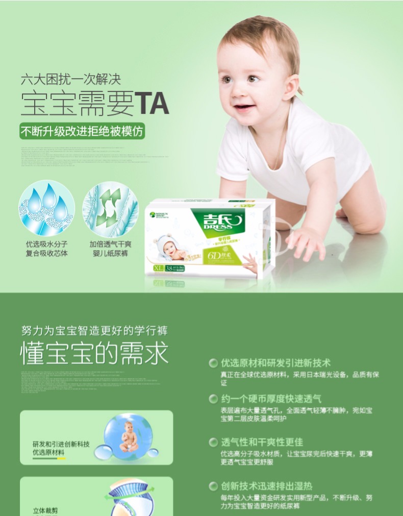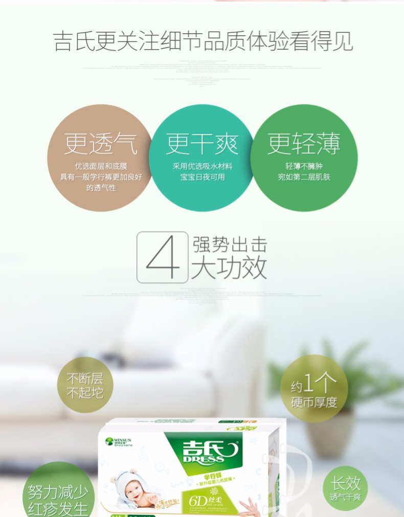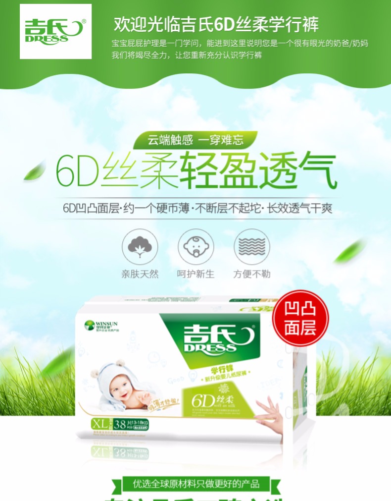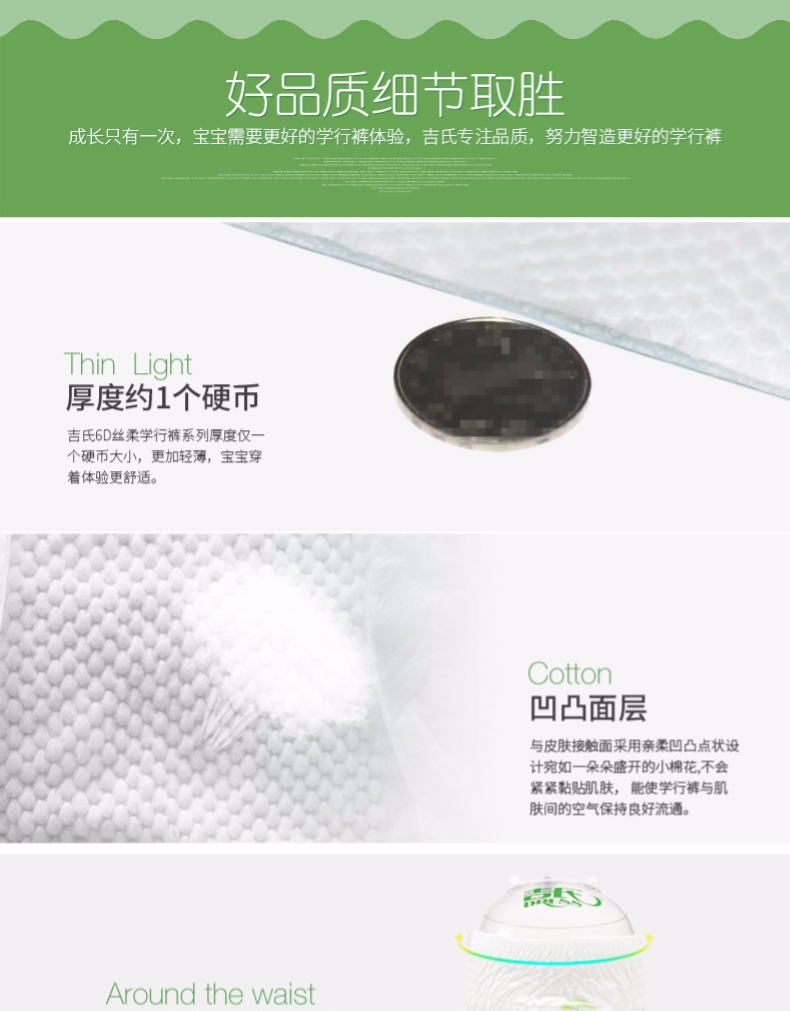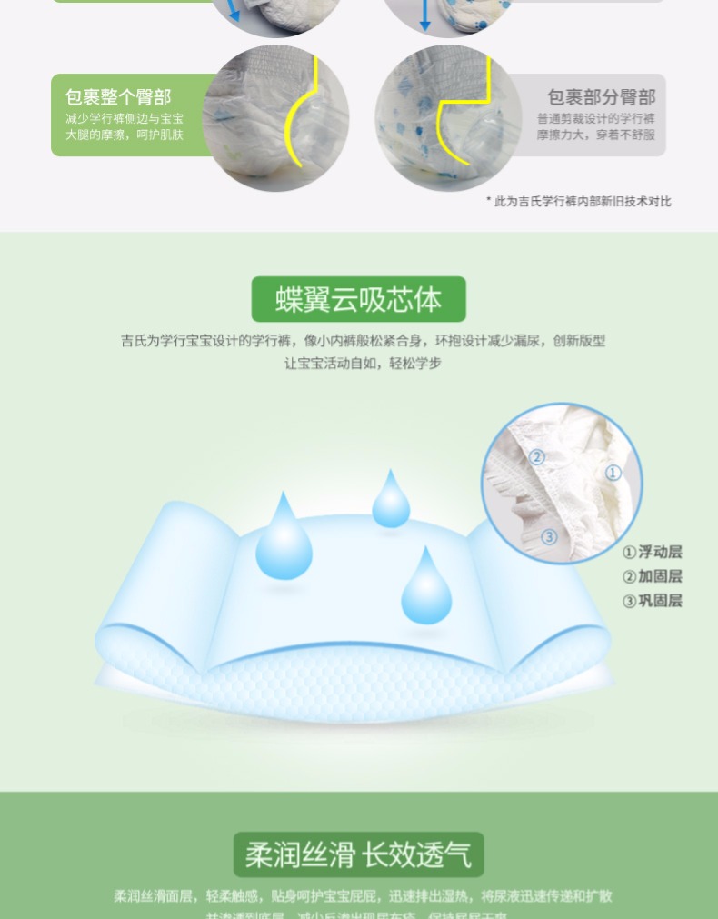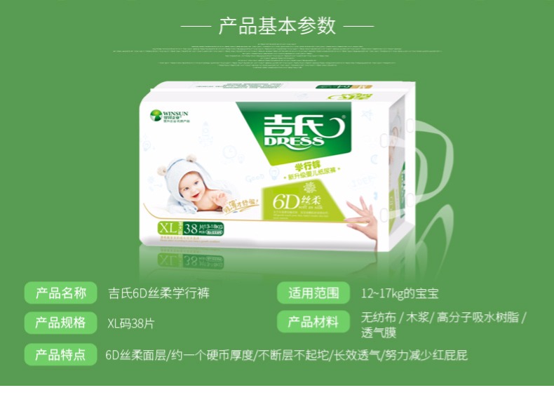 商品名称:吉氏 6D丝柔学行裤XL38男女宝宝尿不湿拉拉裤xl轻薄干爽透气学步裤