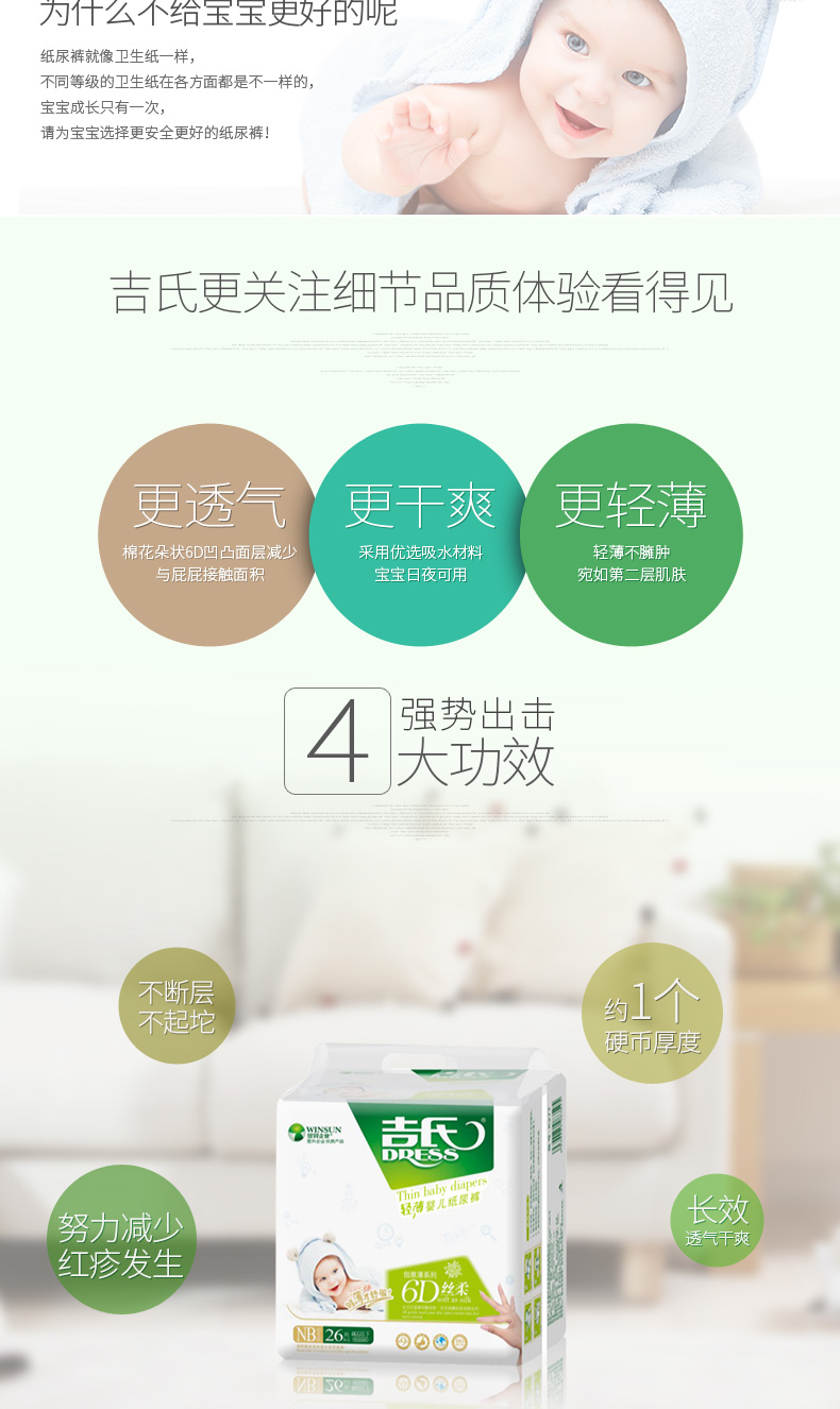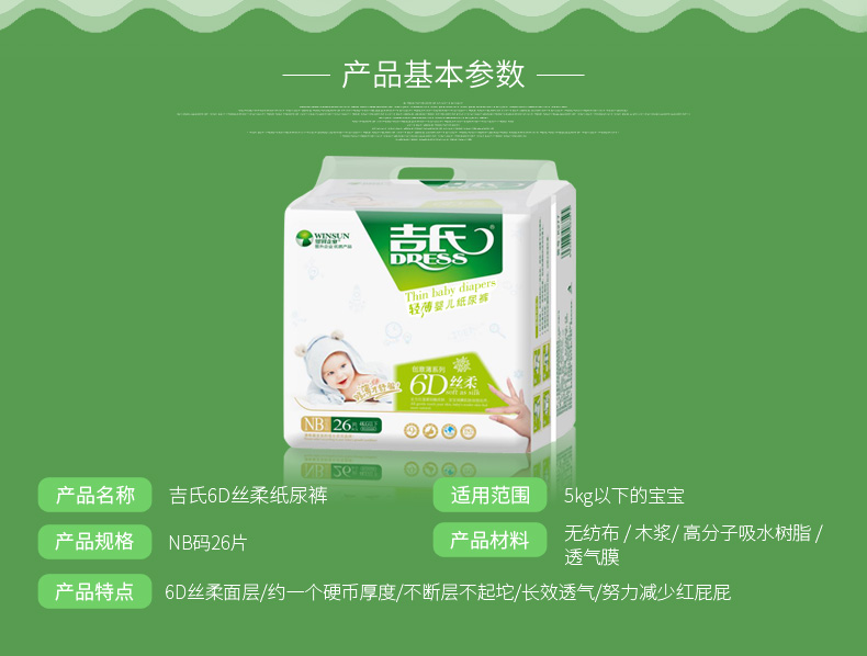商品名称:吉氏 创意薄6D丝柔纸尿裤NB26新生儿尿裤初生宝宝尿不湿nb轻薄透气