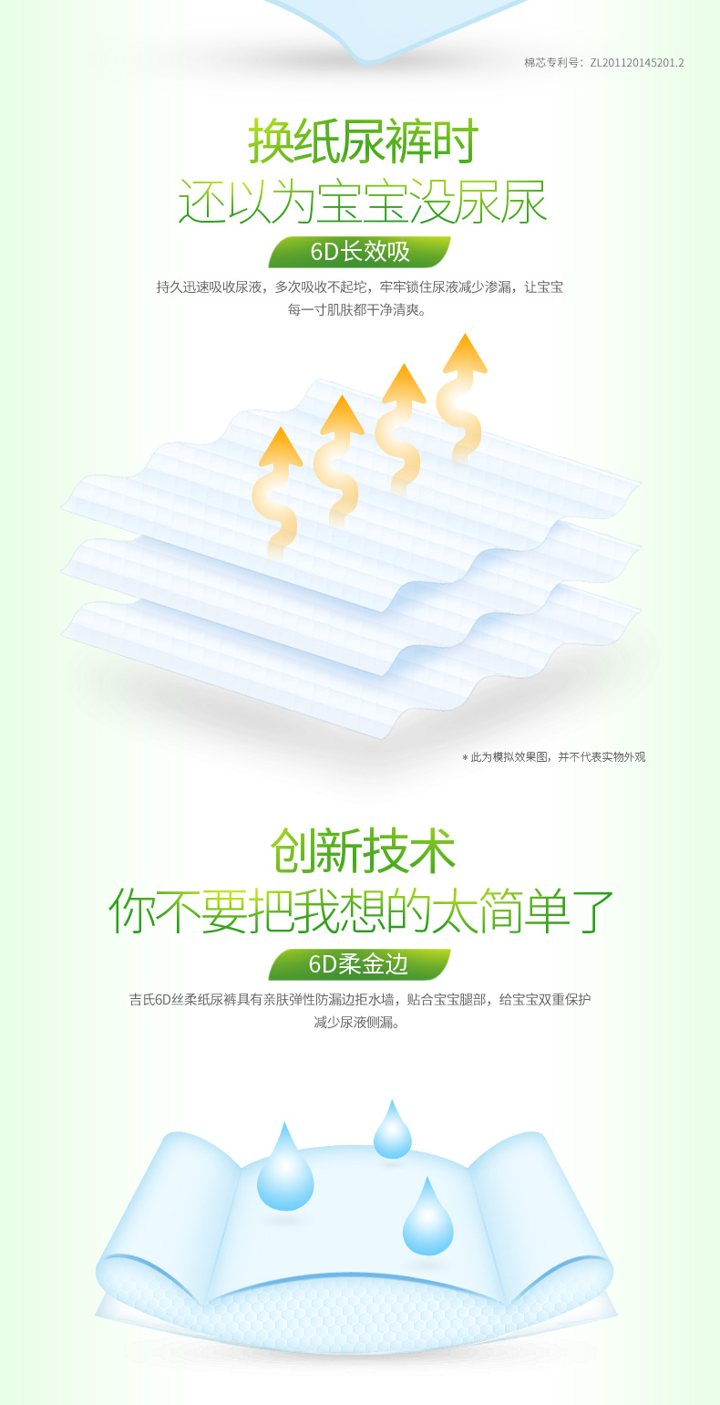 吉氏 创意薄6D丝柔纸尿裤NB26新生儿尿裤初生宝宝尿不湿nb轻薄透气