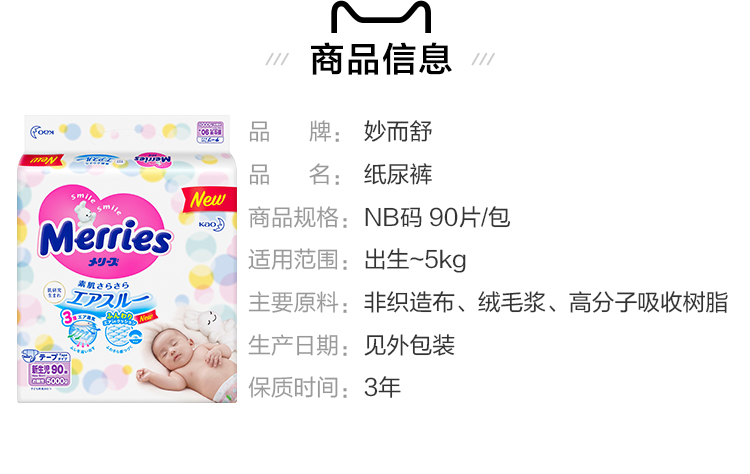 商品名称:花王 日本进口纸尿裤NB90片 超薄透气男女通用婴儿尿不湿