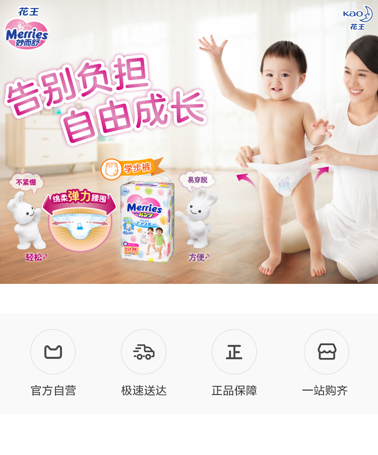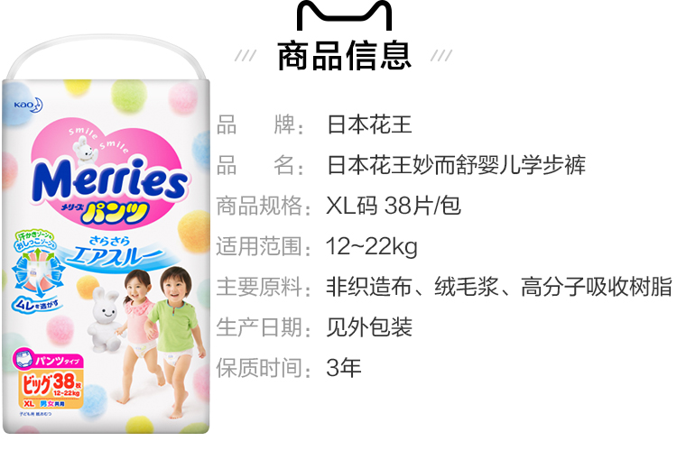 商品名称:花王 日本进口拉拉裤XL38片 超薄透气男女通用尿不湿非纸尿裤