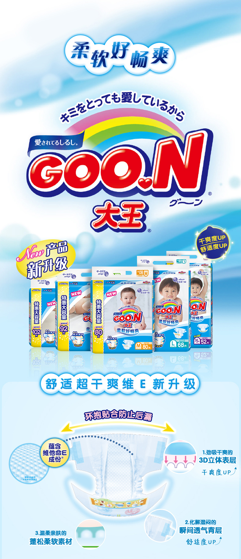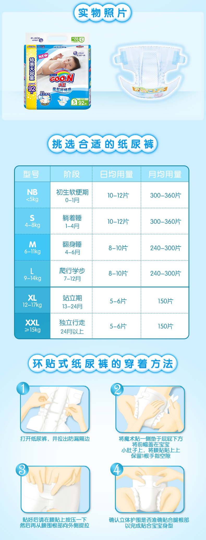 商品名称:大王 维E环贴式纸尿裤S92片特惠装 男女通用婴儿尿不湿