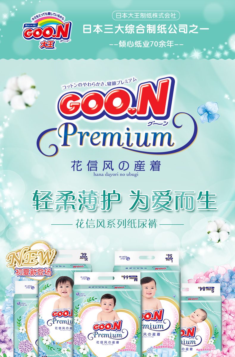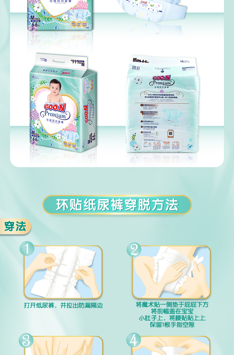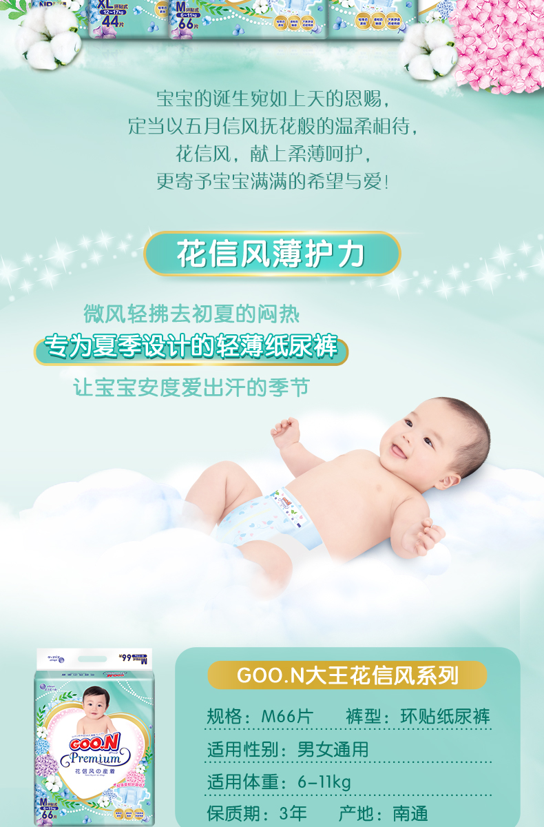 商品名称:大王 花信风纸尿裤M66片男女通用婴儿透气尿不湿