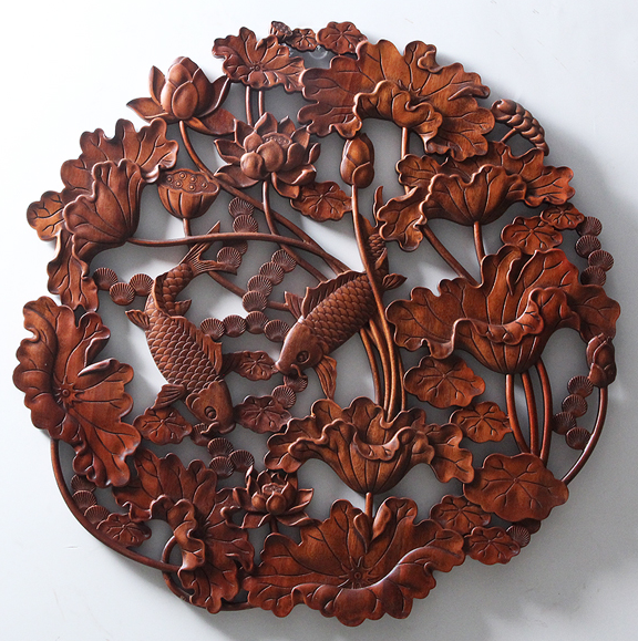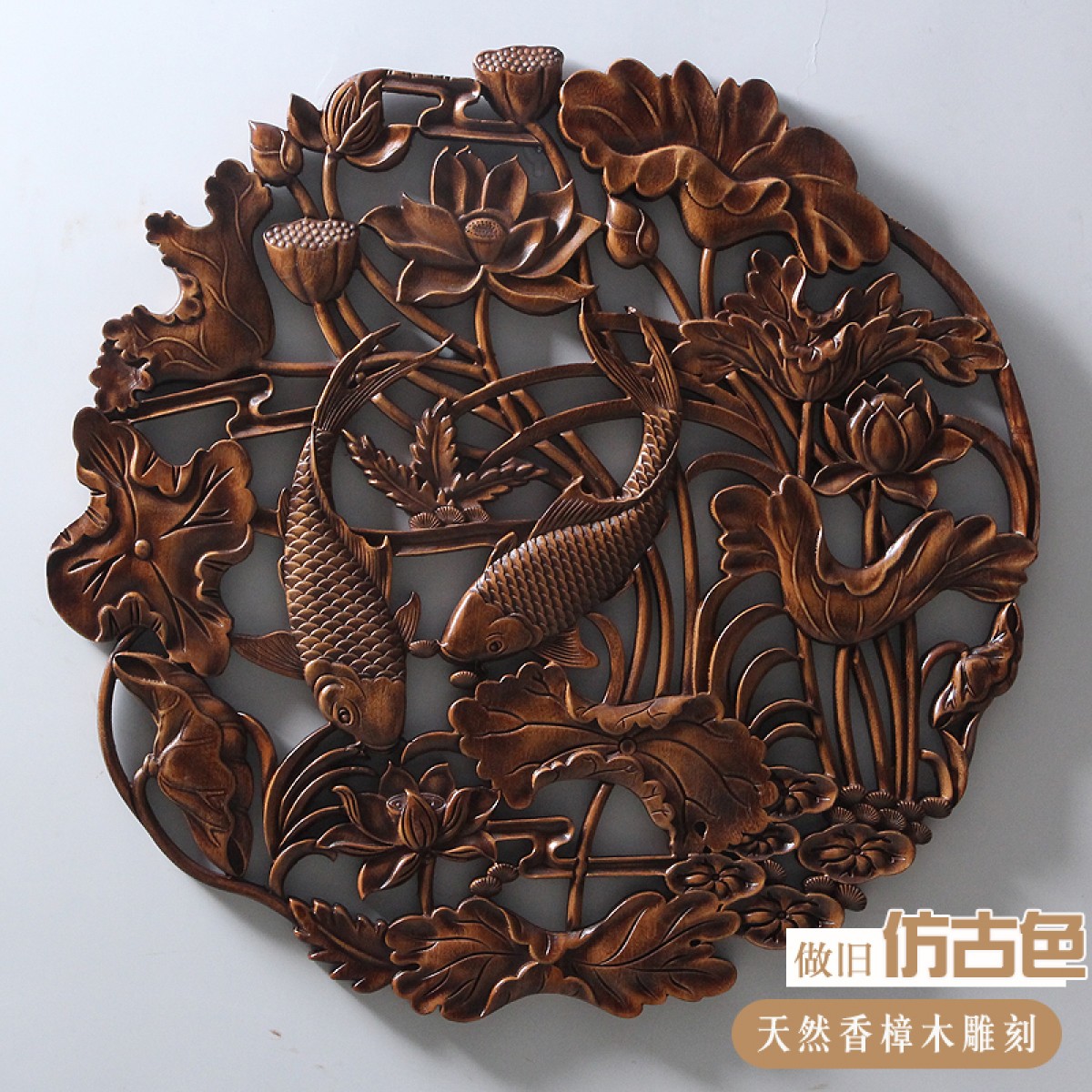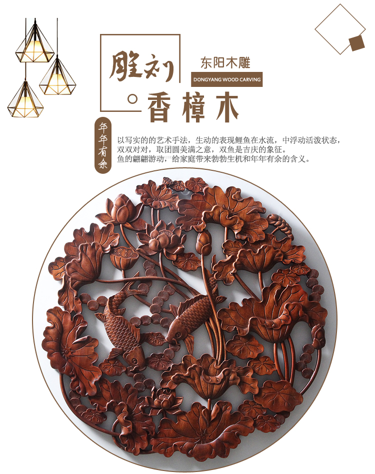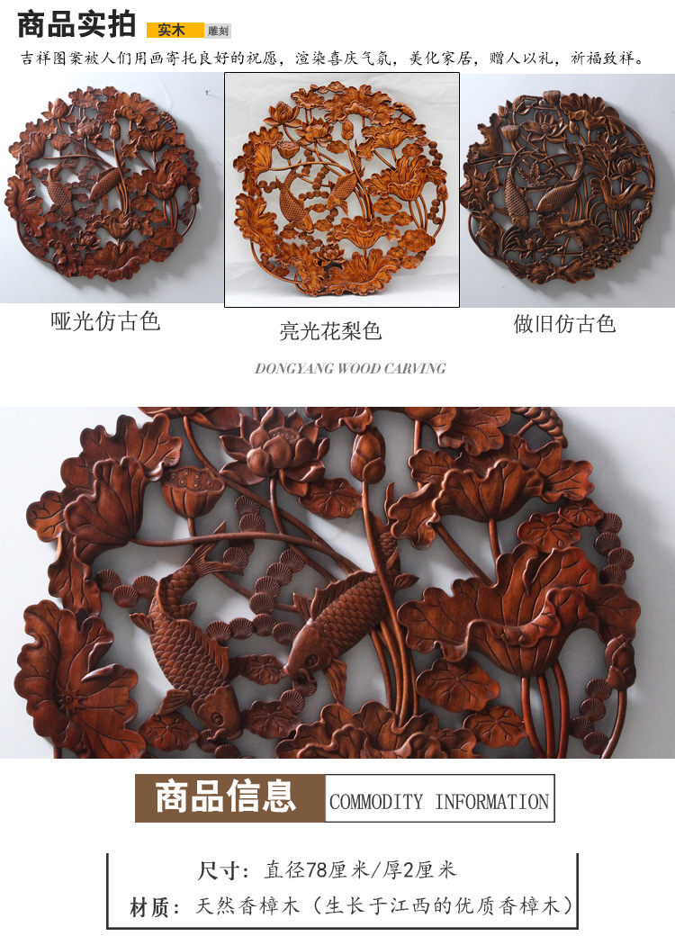 商品名称:国产 木雕挂件 香樟木头雕刻画工艺品中式客厅实木质艺术年年有余