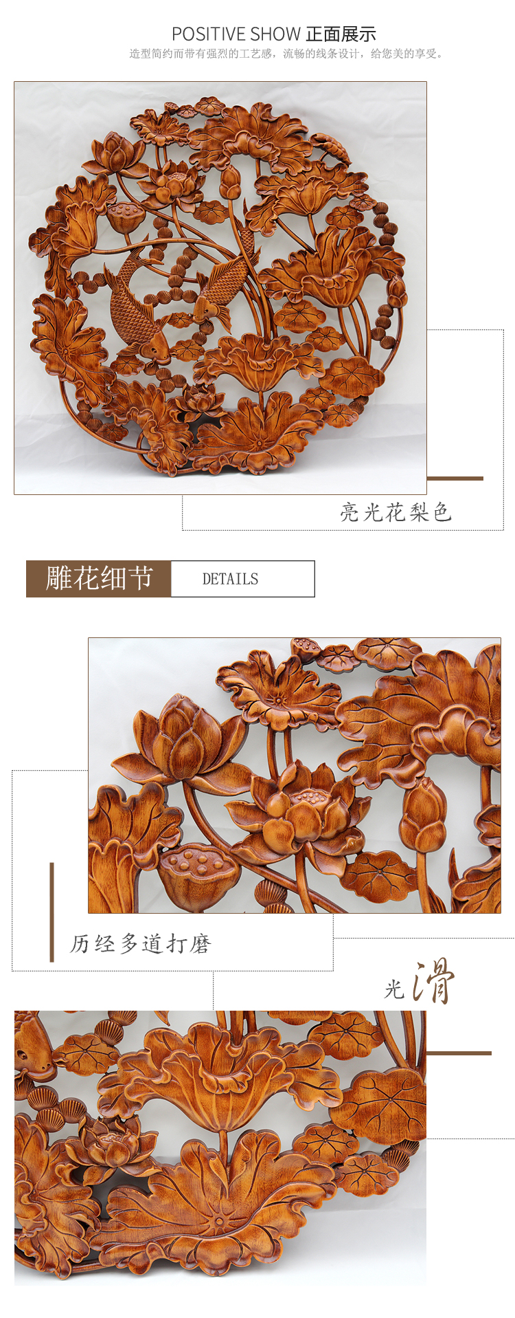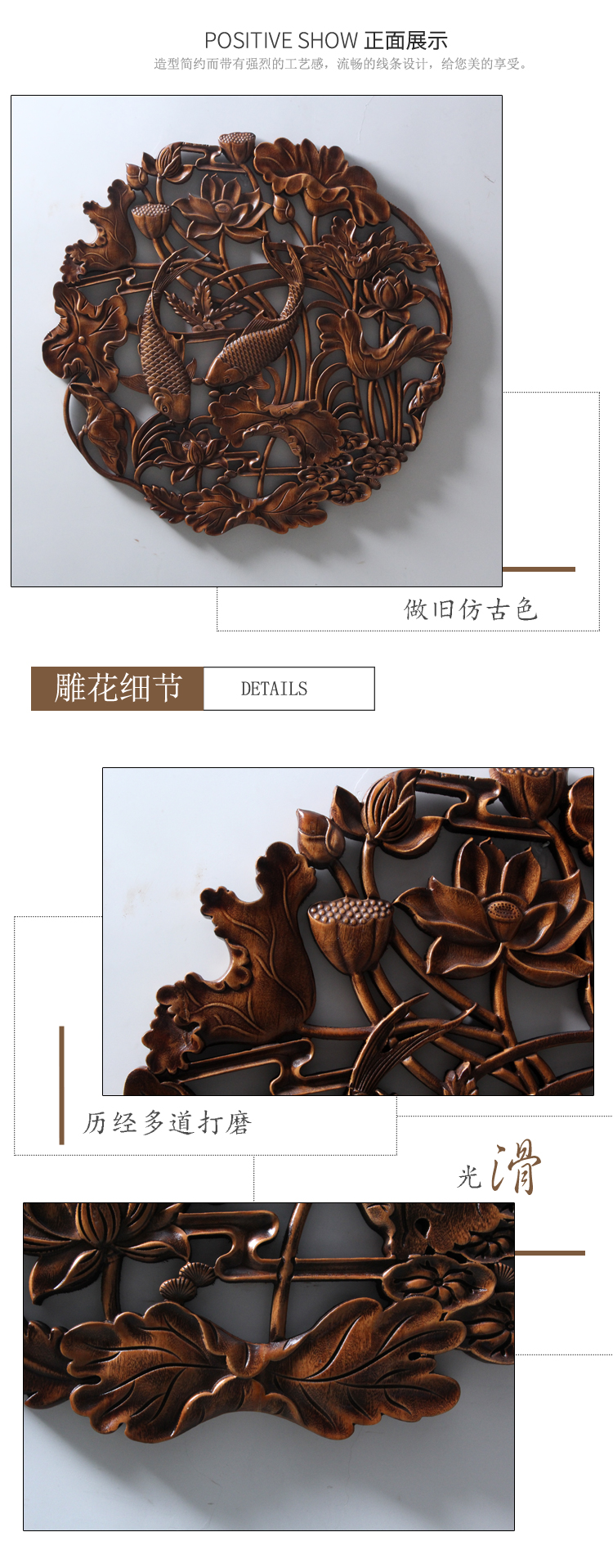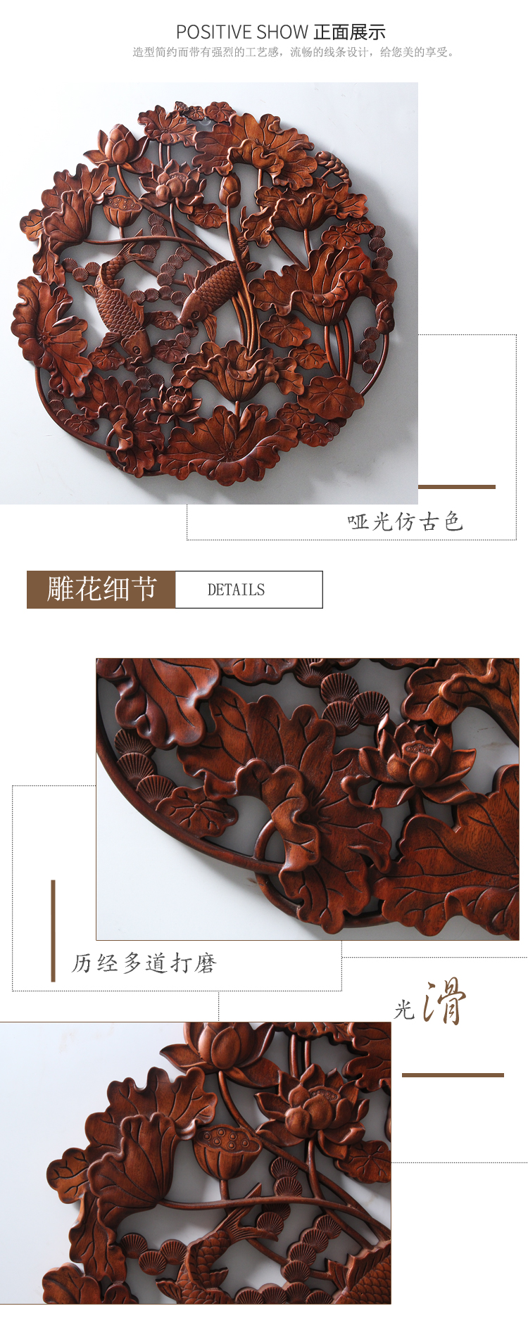 商品名称:国产 木雕挂件 香樟木头雕刻画工艺品中式客厅实木质艺术年年有余