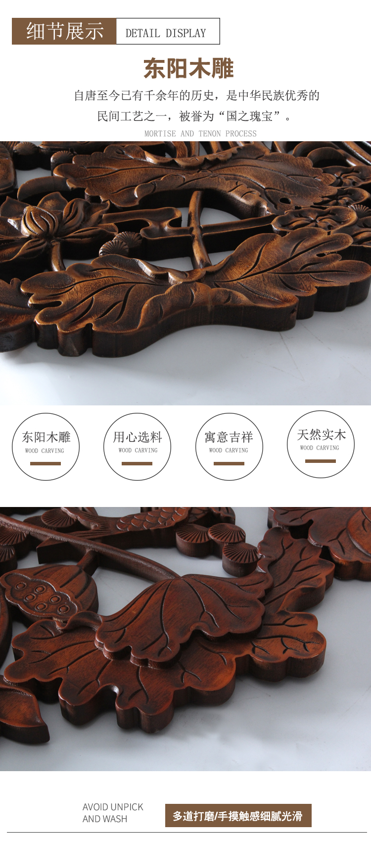 东阳木雕+单面雕花+喷漆工艺