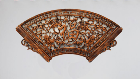 国产 木雕挂件 香樟木头雕刻画工艺品中式客厅墙壁背景实木质扇形