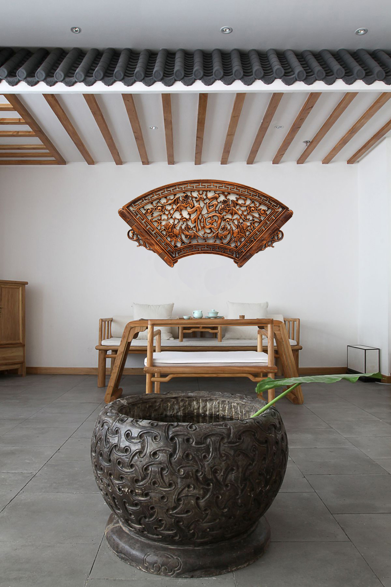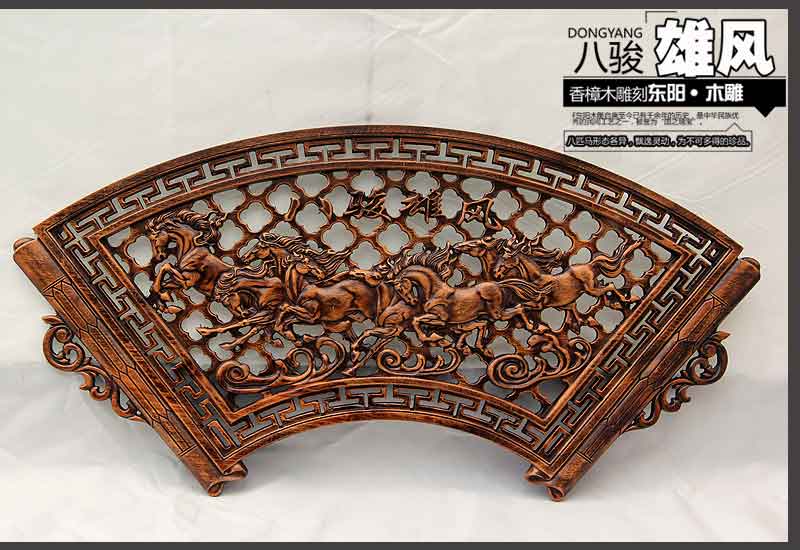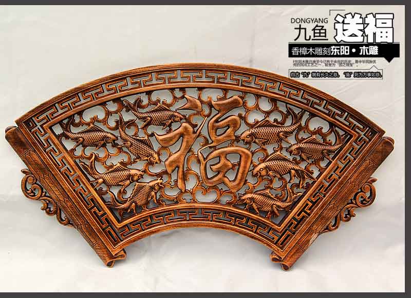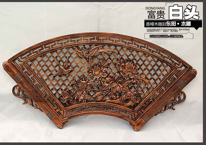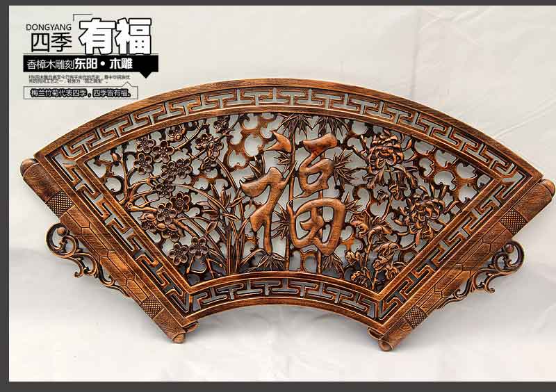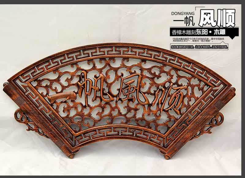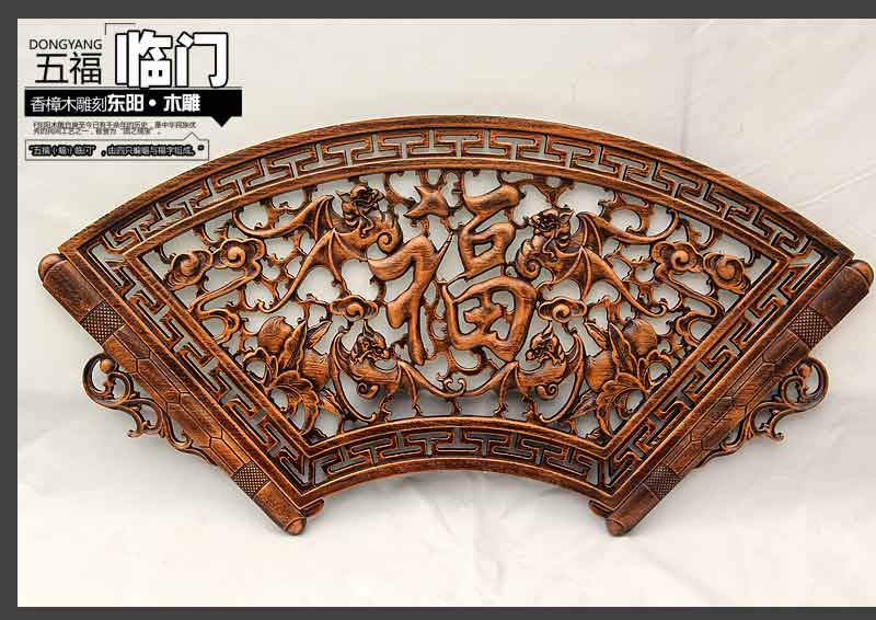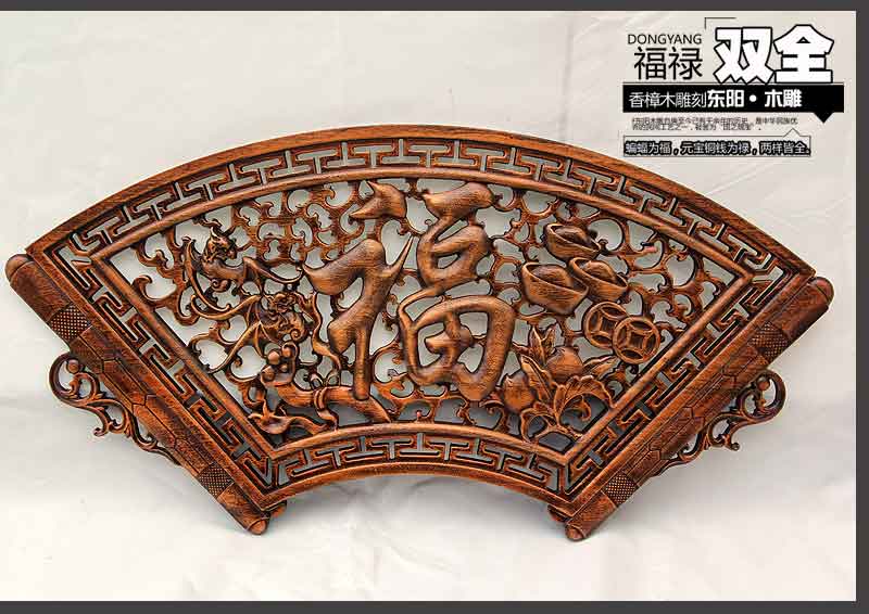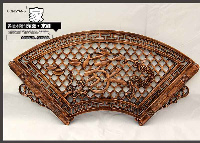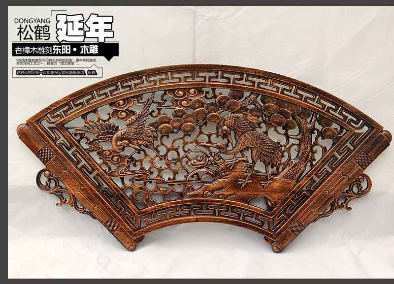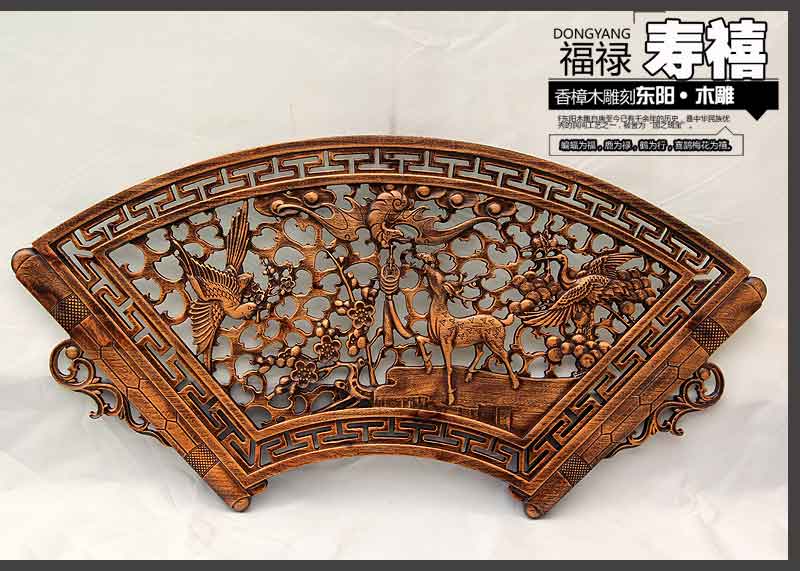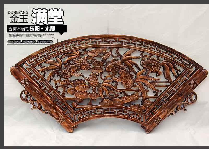 商品名称:国产 木雕挂件 香樟木头雕刻画工艺品中式客厅墙壁背景实木质扇形