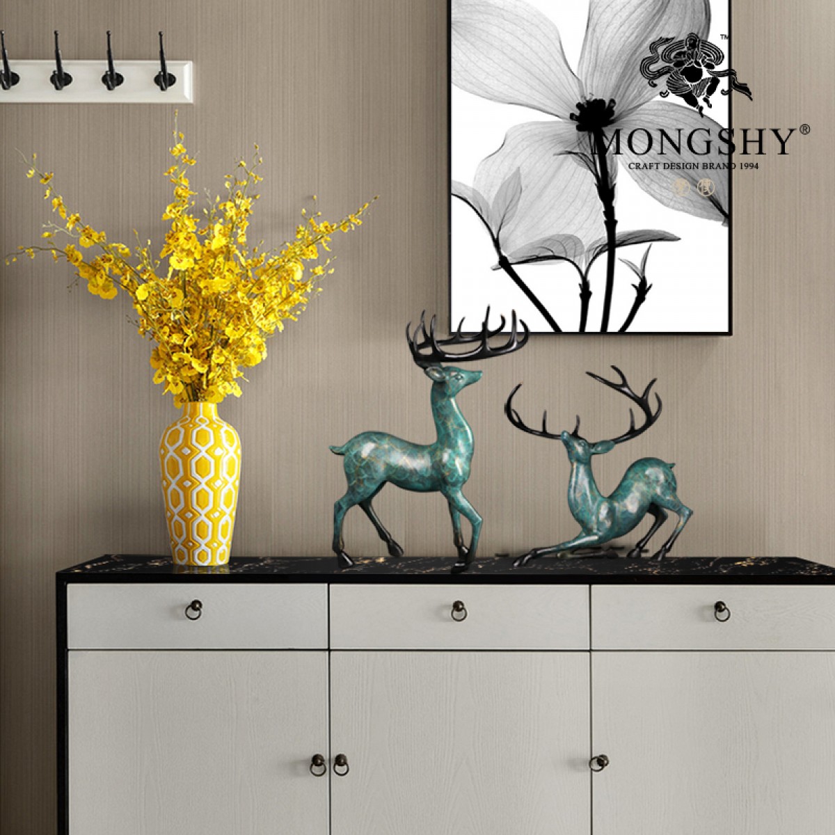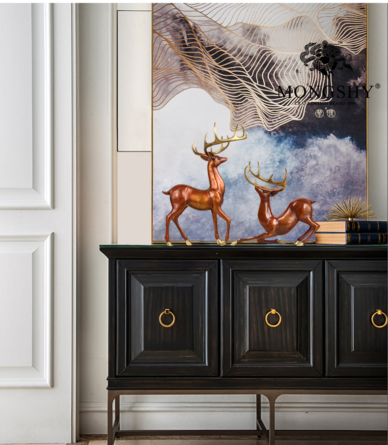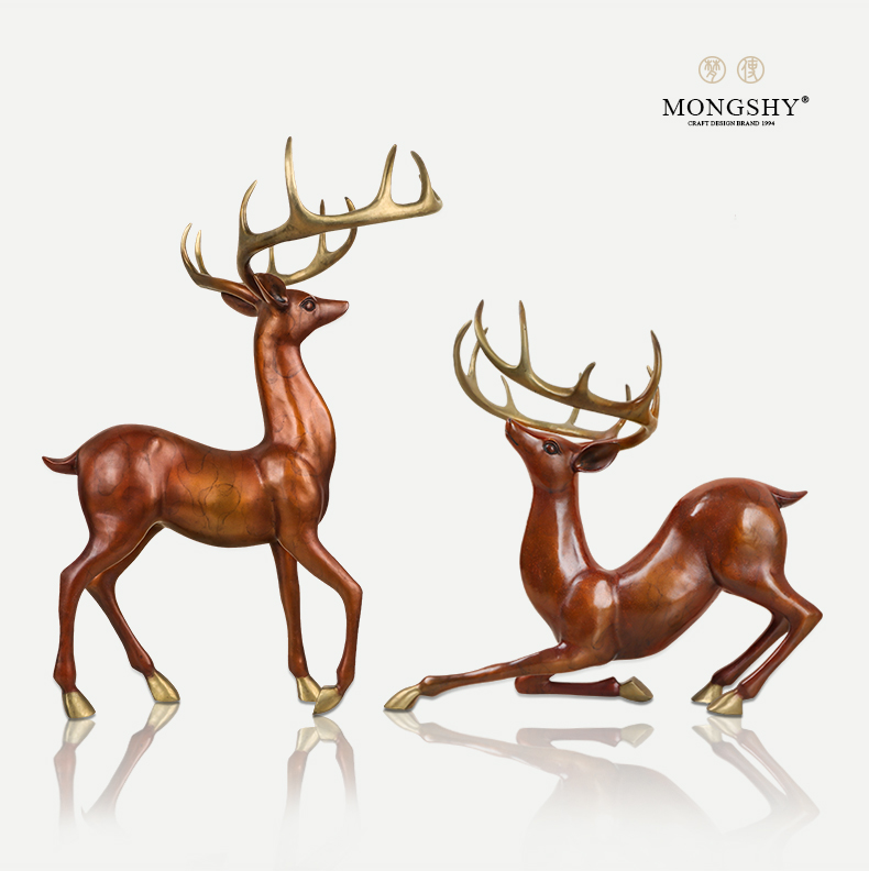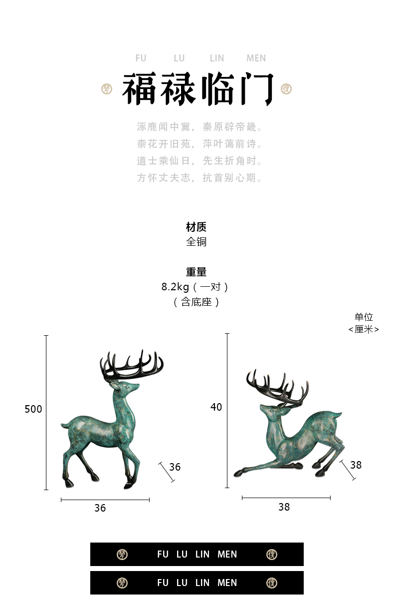 商品名称:国产 纯铜鹿一对新中式家居装饰摆件工艺品客厅玄关风水招财开业礼品