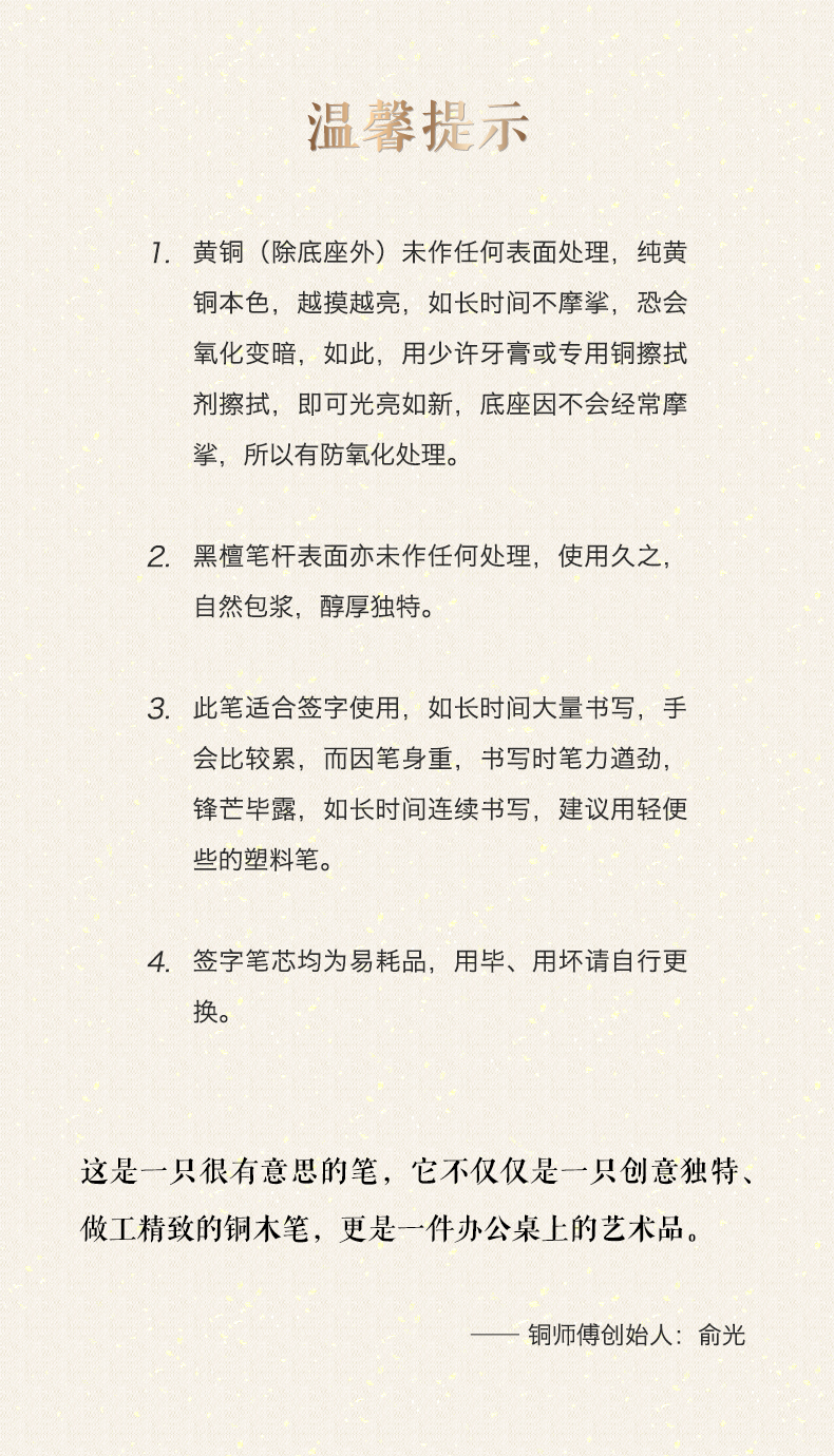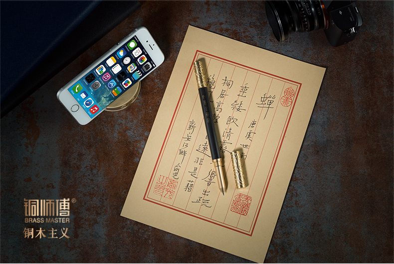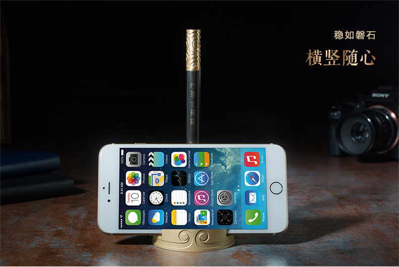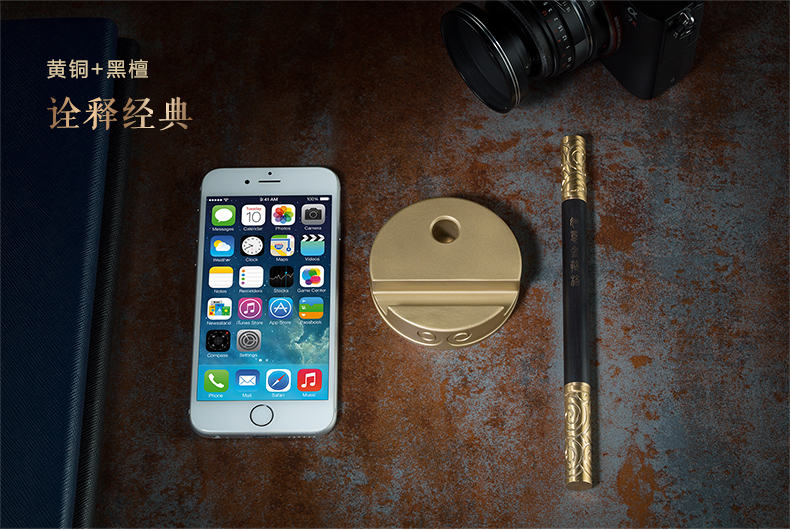 商品名称:铜师傅《铜木主义之如意金箍棒》签字笔 双色笔 笔架 镇纸 手机架
