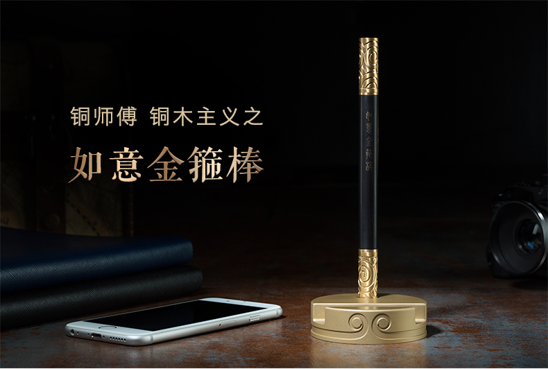 铜师傅《铜木主义之如意金箍棒》签字笔 双色笔 笔架 镇纸 手机架