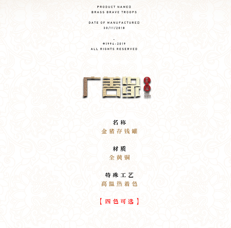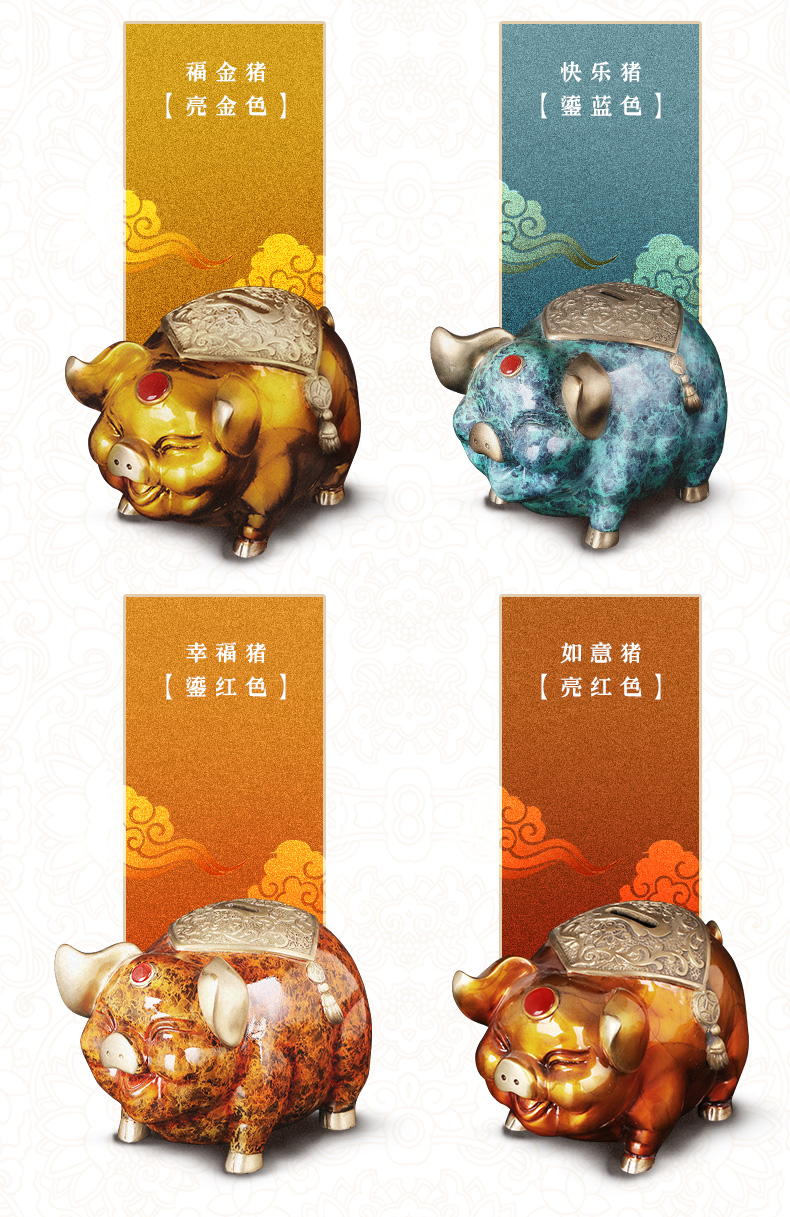 商品名称:国产 纯铜猪存钱罐金摆件萌生肖招财家居装饰品新年送礼物开业乔迁结婚