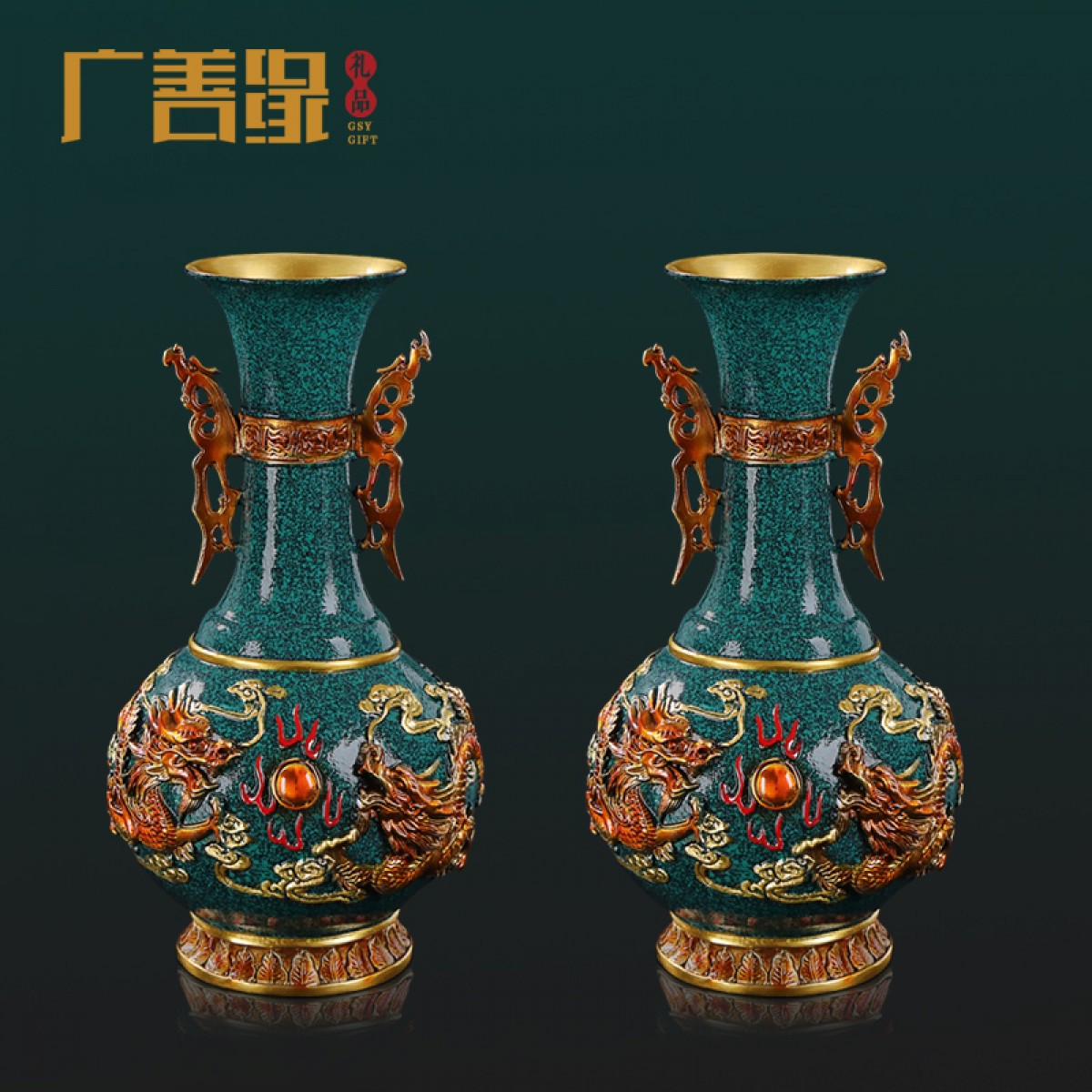 国产 铜花瓶摆件客厅家居装饰新中式插花花器乔迁礼品办公桌面彩铜花瓶