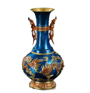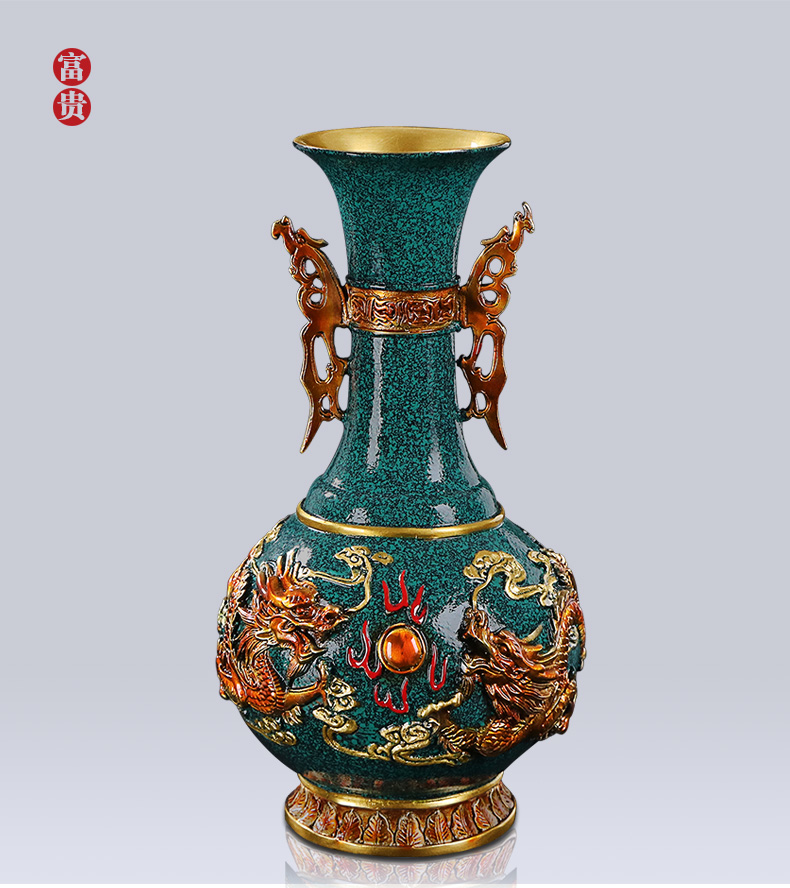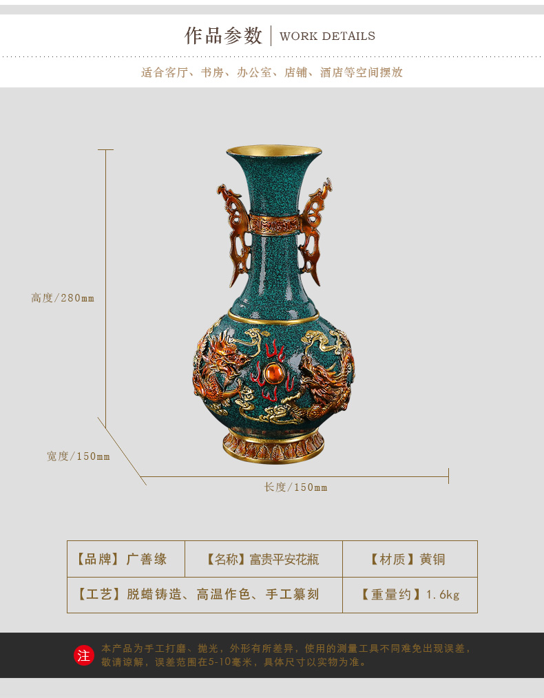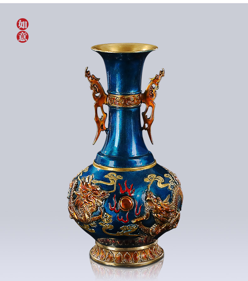 商品名称:国产 铜花瓶摆件客厅家居装饰新中式插花花器乔迁礼品办公桌面彩铜花瓶