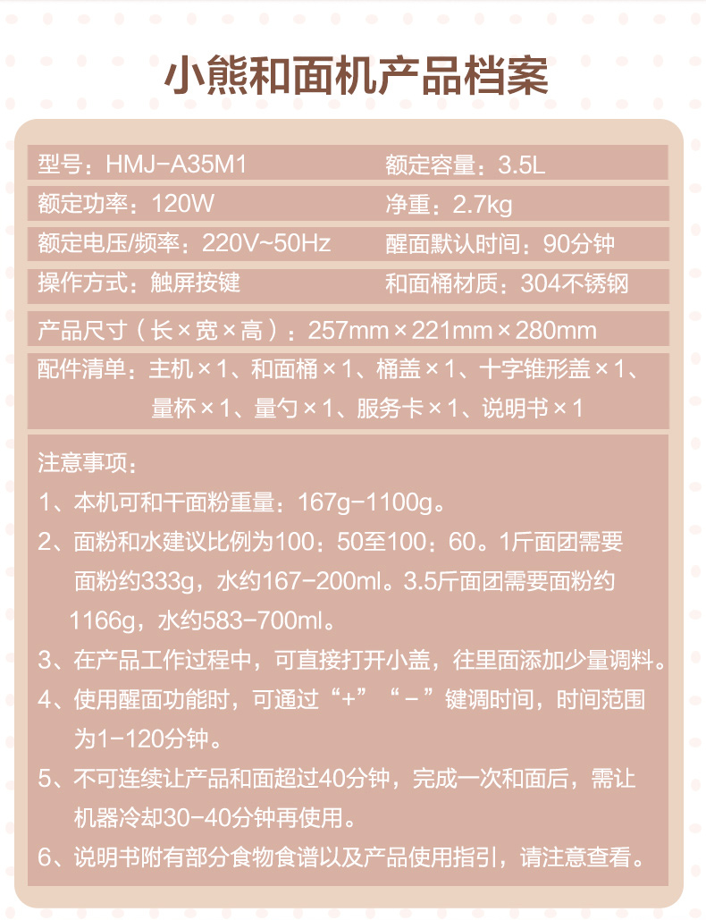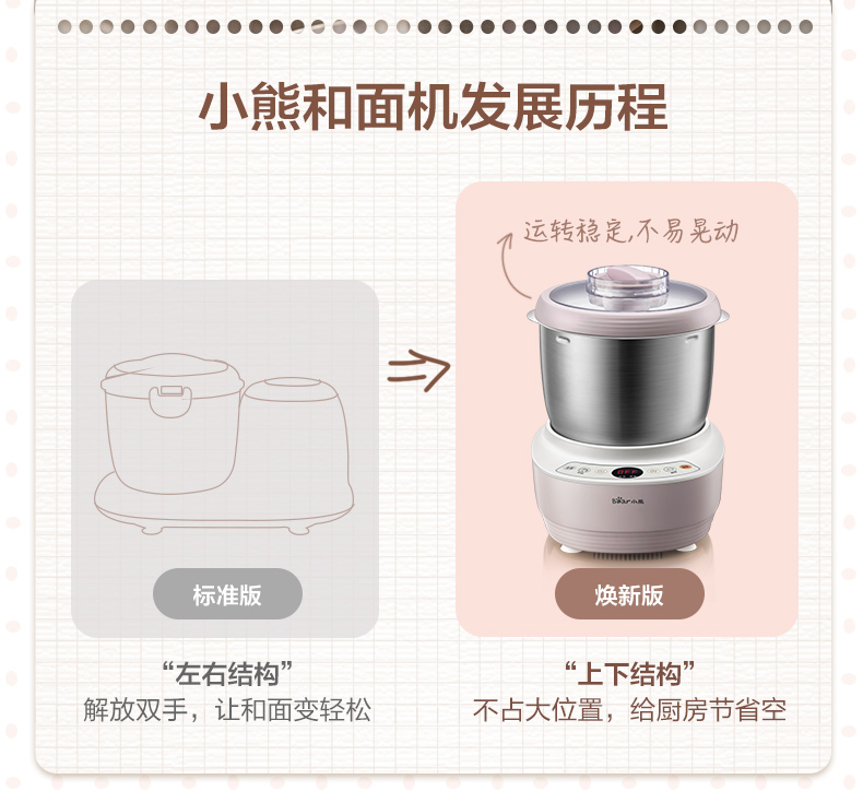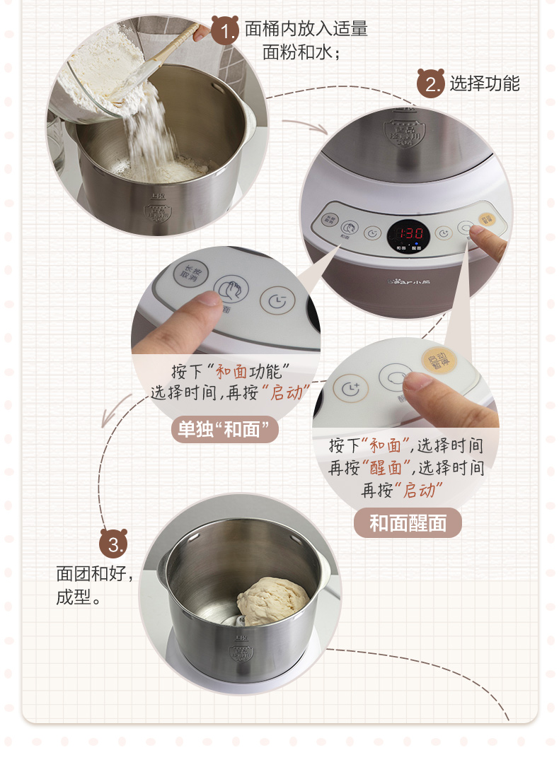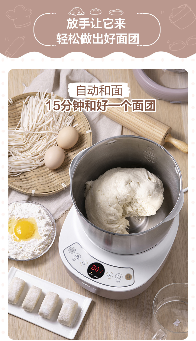商品名称:小熊 和面机家用多功能不锈钢揉面活面小型全自动面粉搅拌机厨师机
