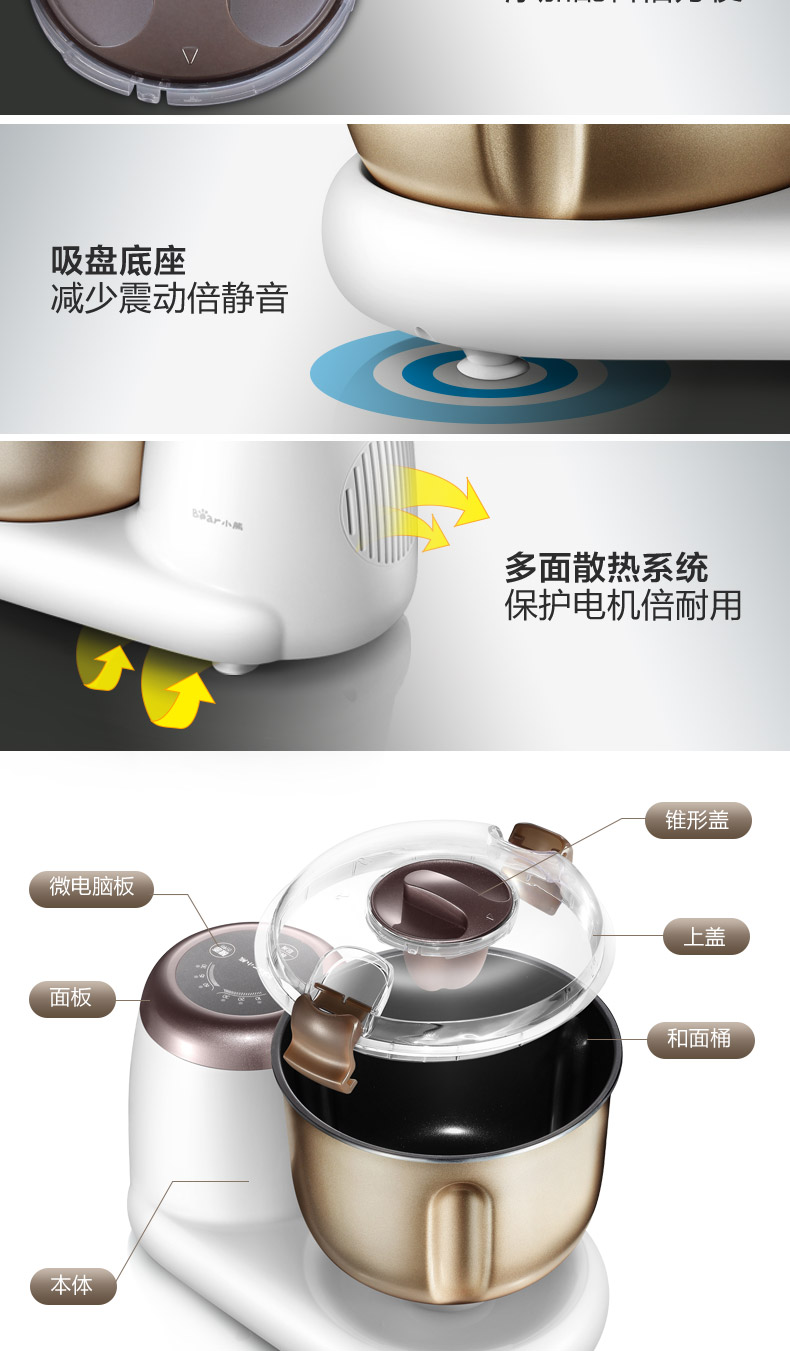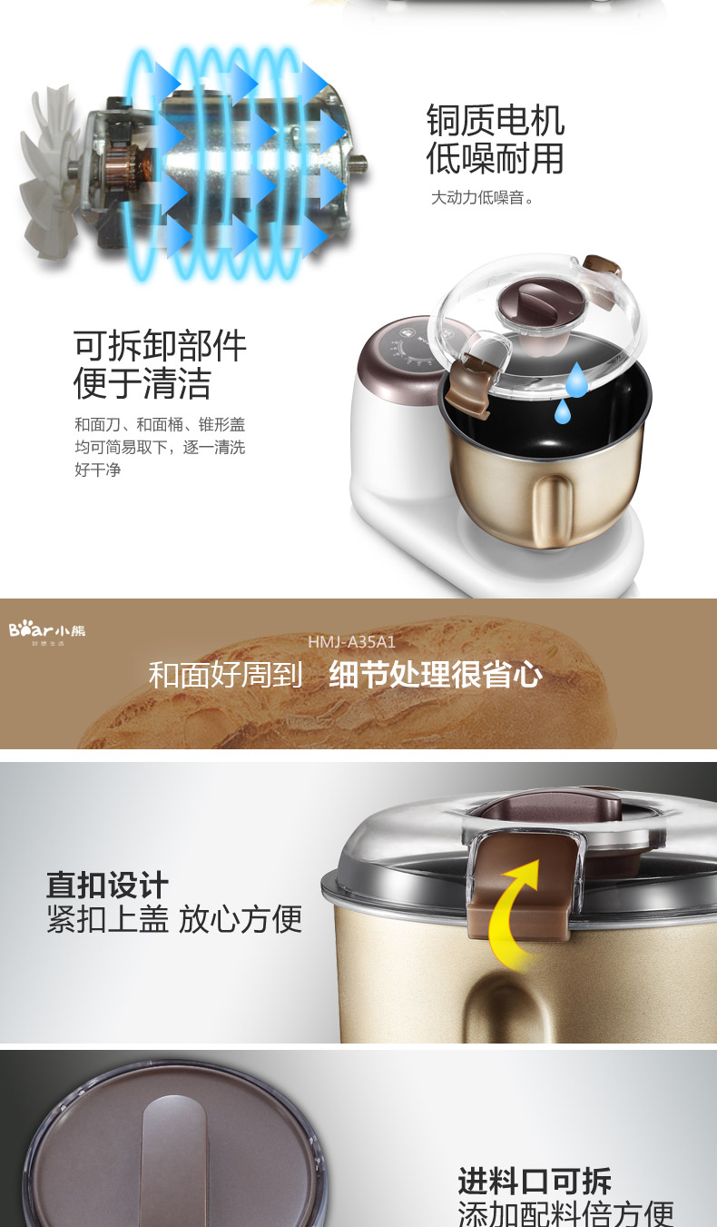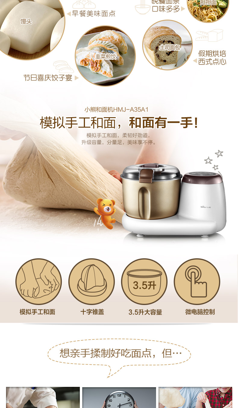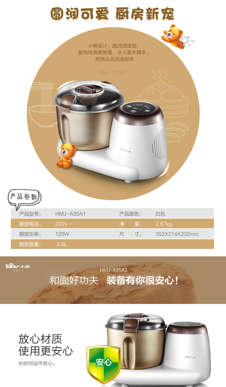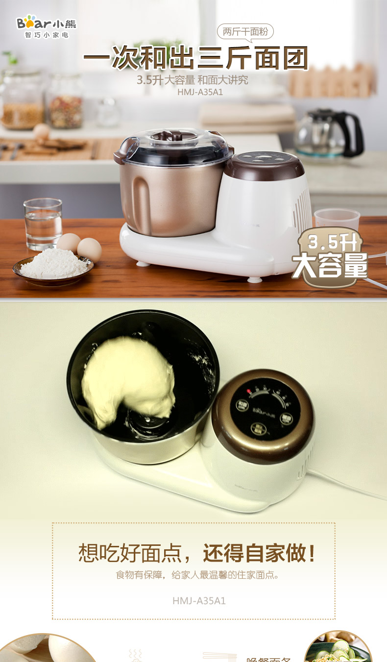 商品名称:小熊 和面机家用多功能揉面机小型全自动馒头面包活面 面粉搅拌机