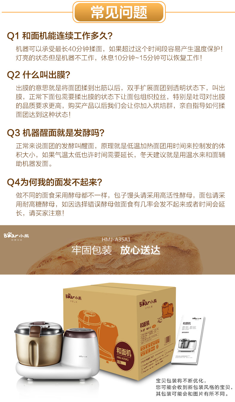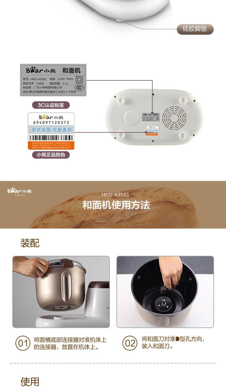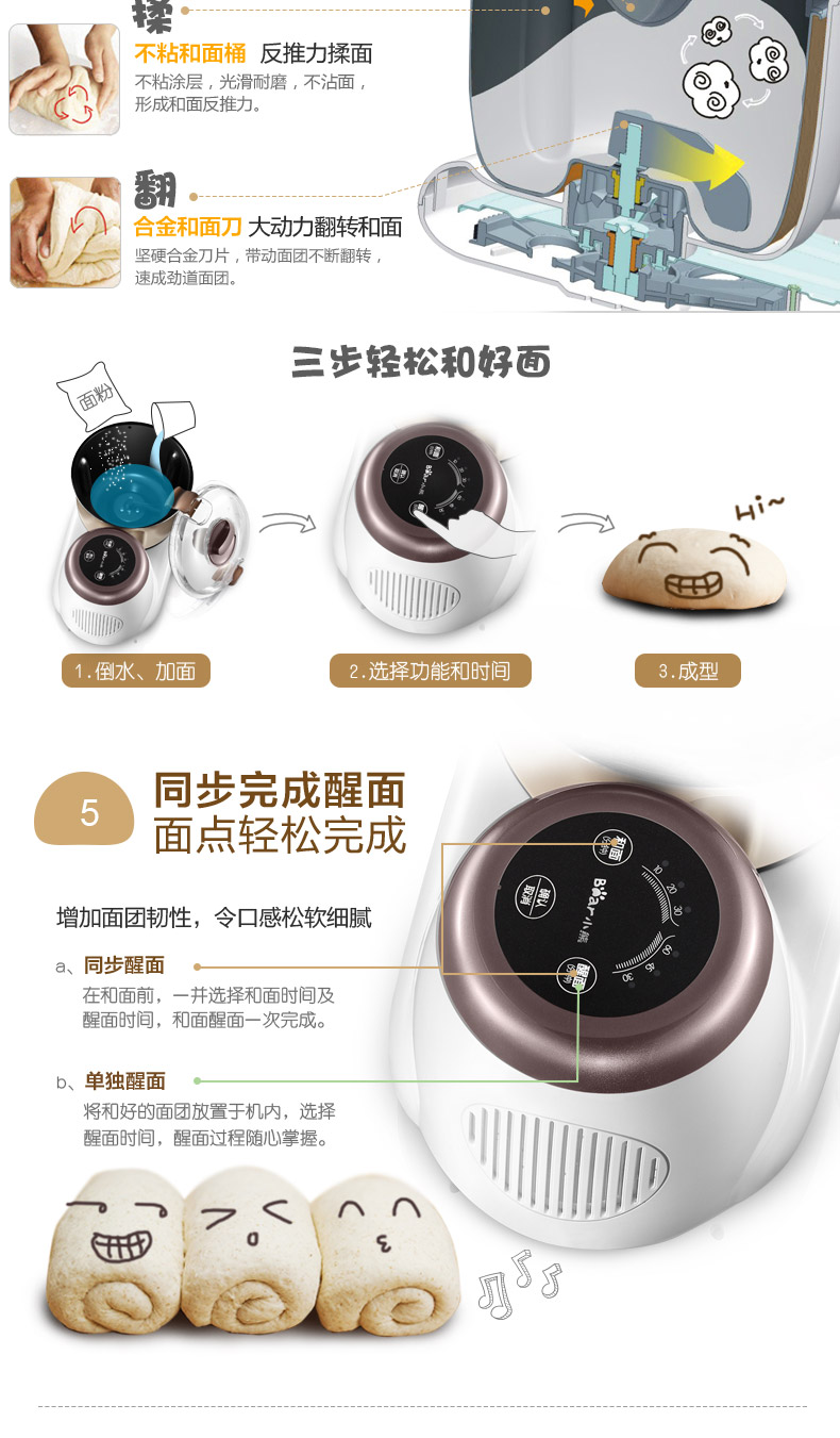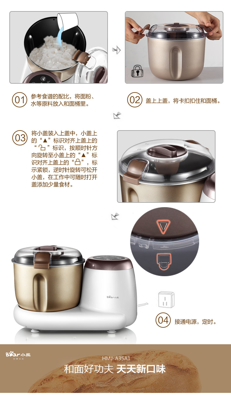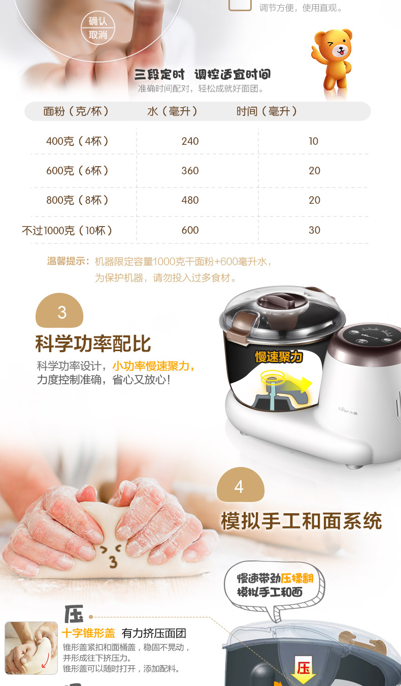 商品名称:小熊 和面机家用多功能揉面机小型全自动馒头面包活面 面粉搅拌机