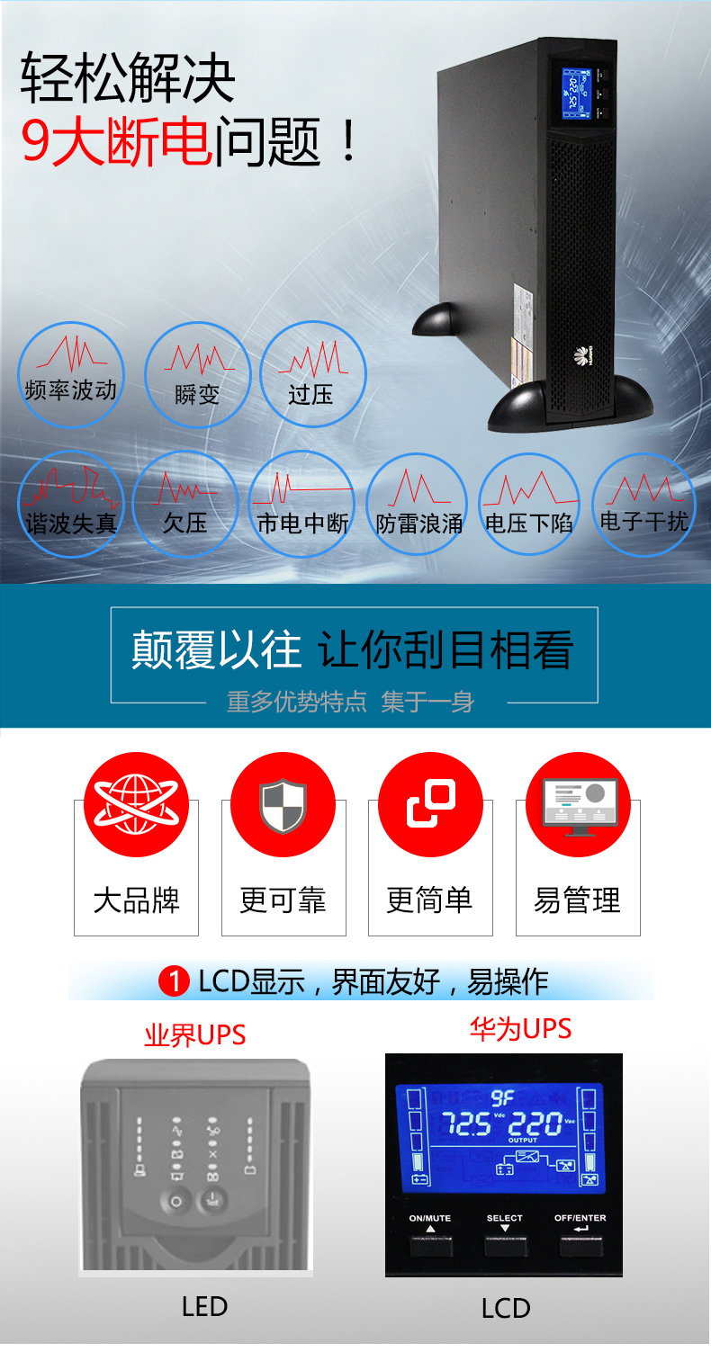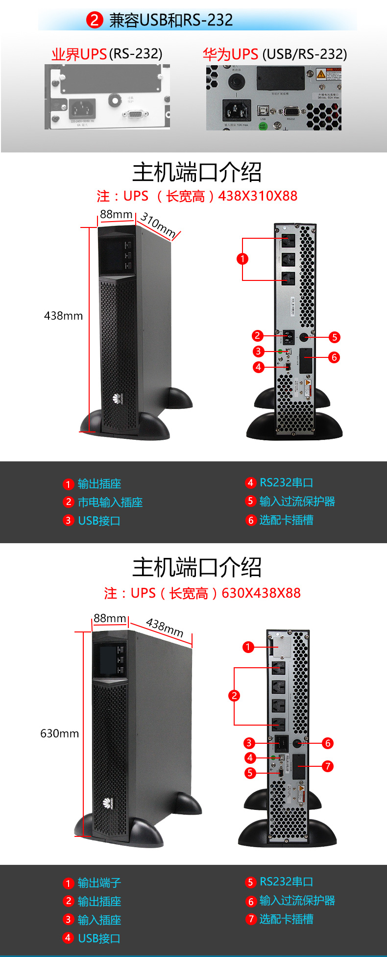 华为 UPS不间断电源长延时主机 需搭配电池使用 2000-G-1KRTL/800W