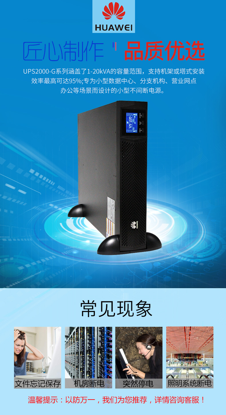 商品名称:华为 UPS不间断电源长延时主机 需搭配电池使用 2000-G-1KRTL/800W
