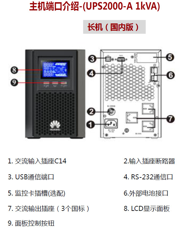 商品名称:华为 UPS电源不间断电源 800W 在线式 UPS2000-A-1KTTL 1KVA