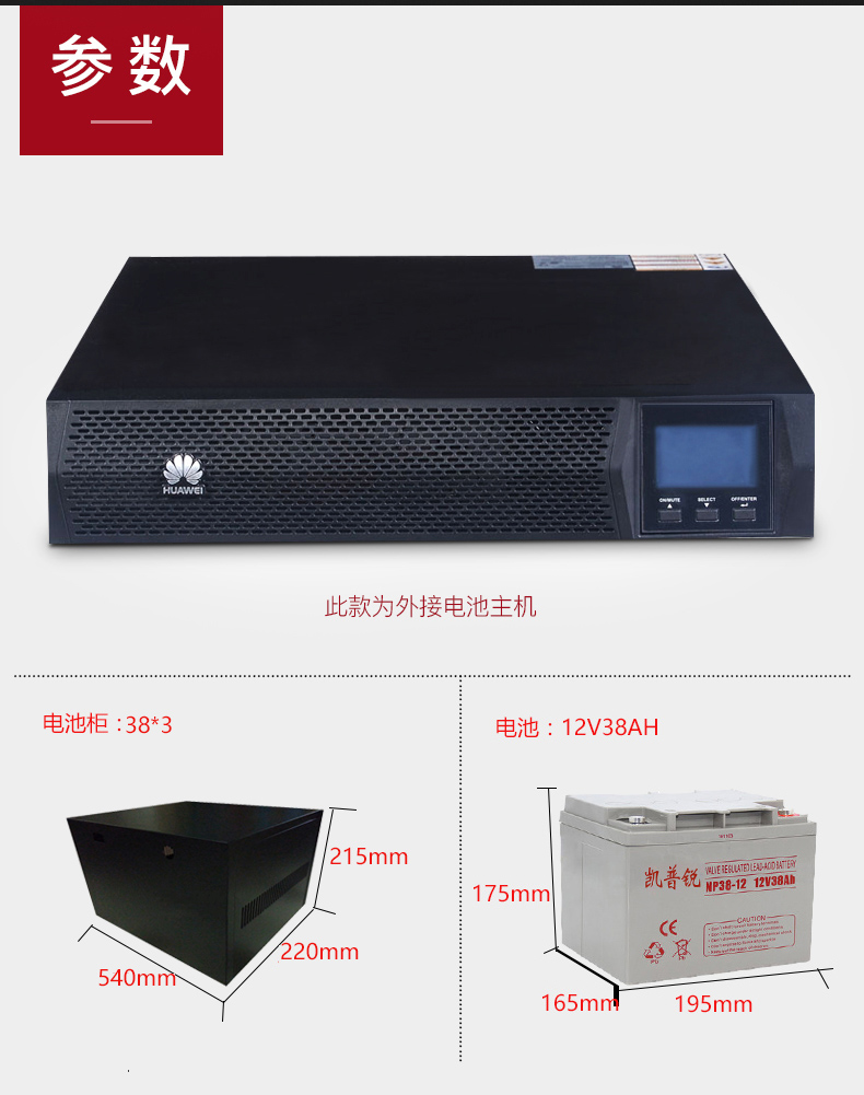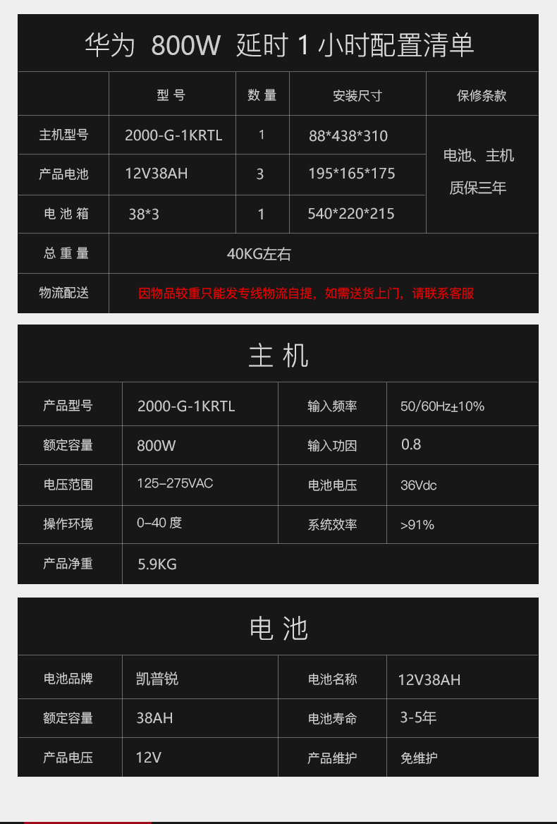 商品名称:华为 备用电源800W不间断 延时稳压供电1小时 UPS2000-G-1KRTL UPS