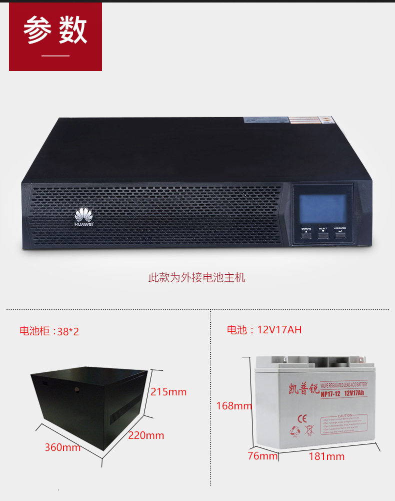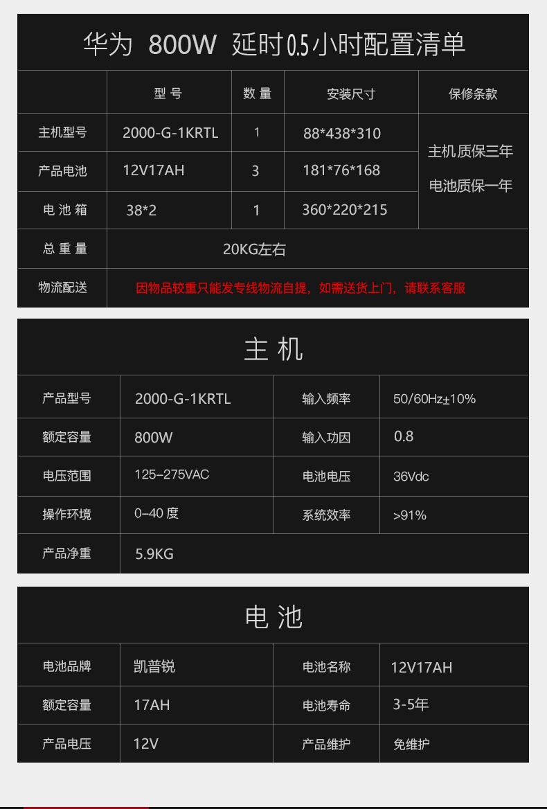 商品名称:华为 备用电源800W不间断延时稳压供电30分钟 UPS2000-G-1KRTL UPS