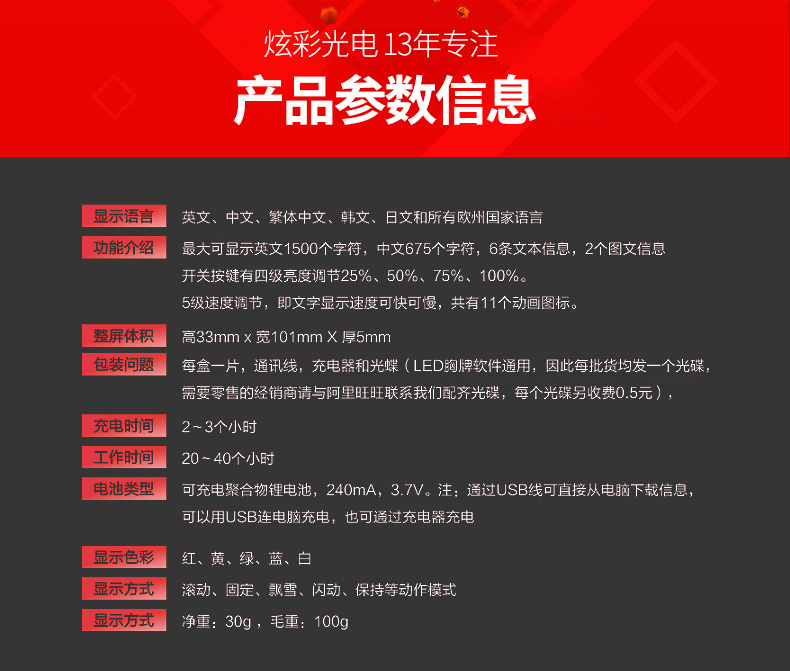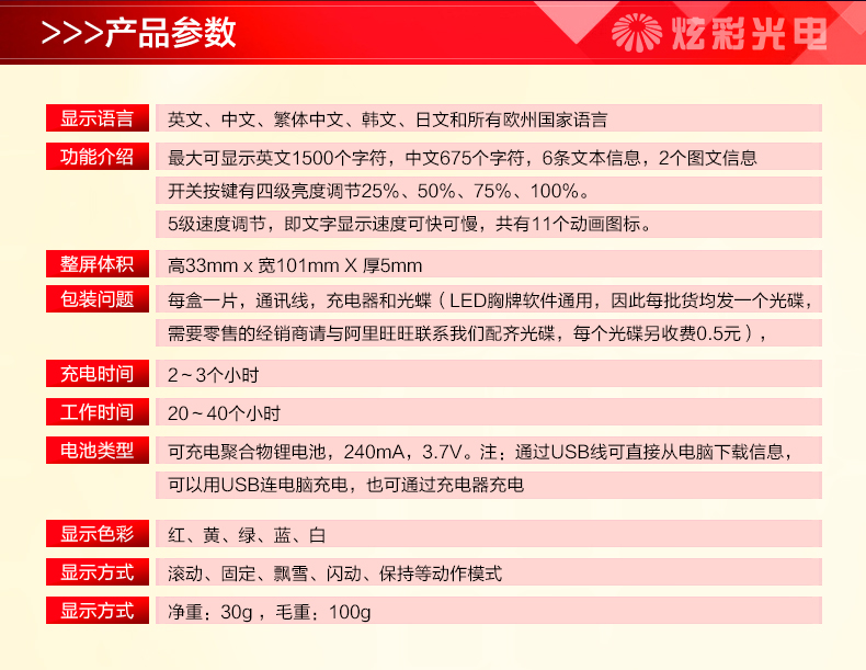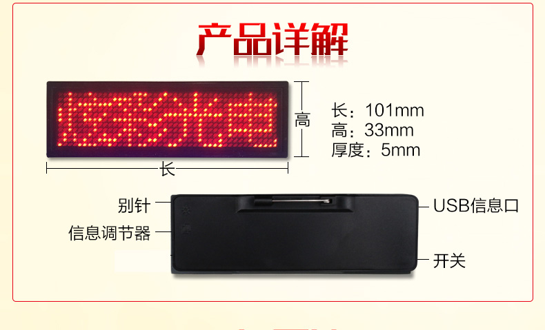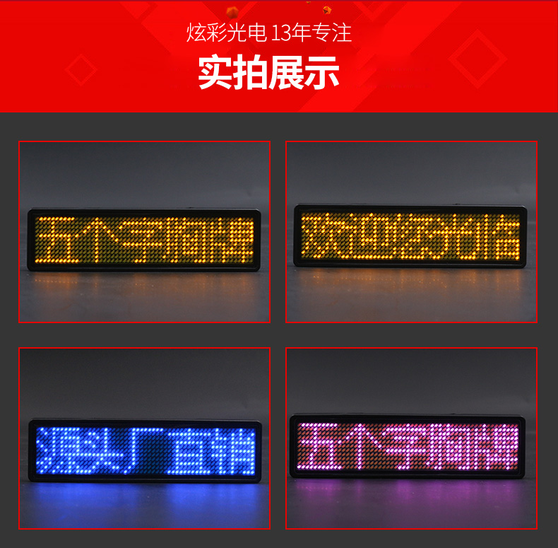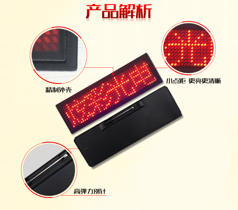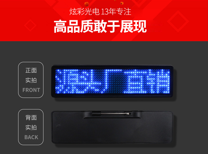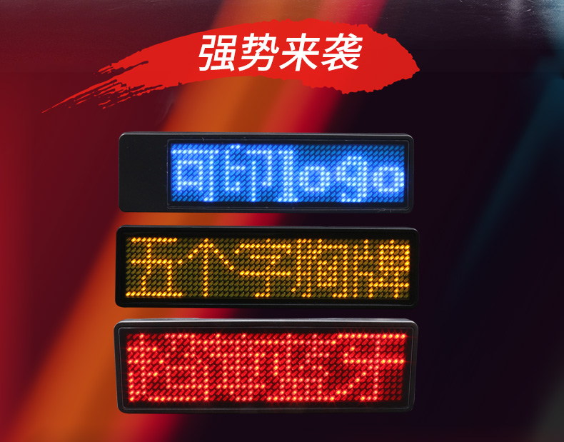 商品名称:国产 LED胸牌显示屏充电电子胸牌滚动四字胸卡名片屛工号牌广告屏e代驾 HVASXP