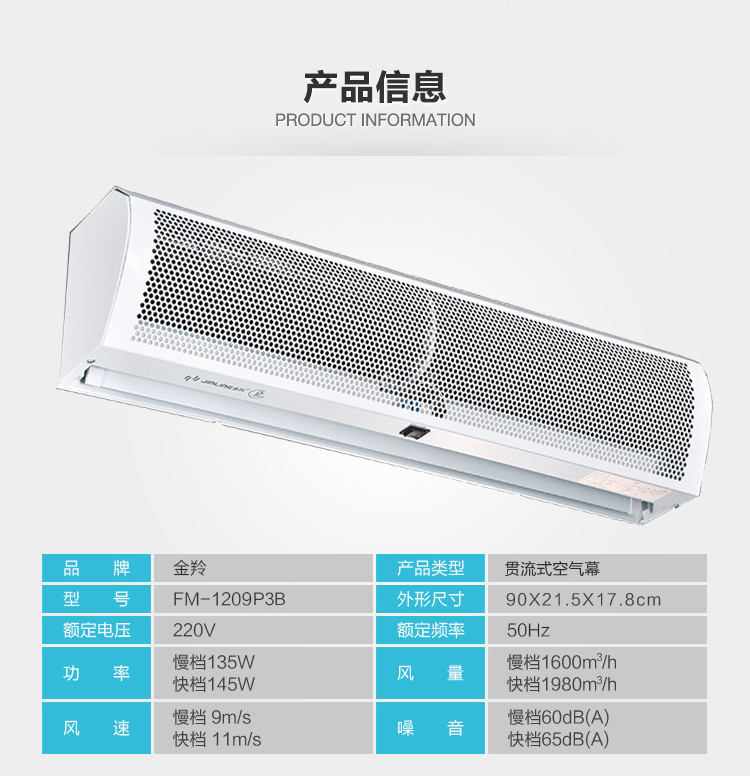 商品名称:金羚 贯流式风幕机 风帘门头空气幕0.9米静音 FM-1209P3B