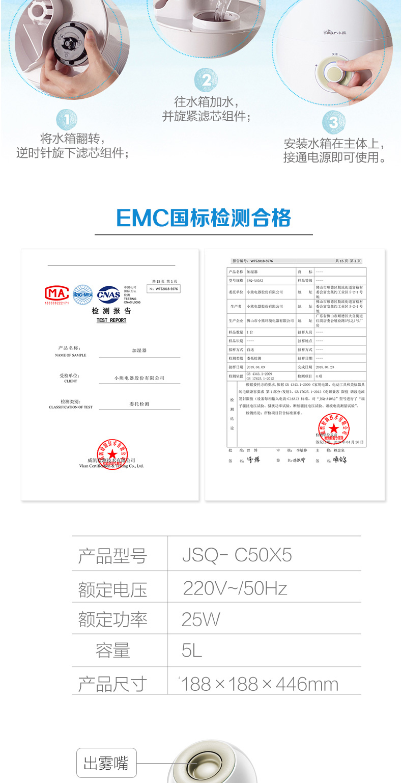 商品名称:小熊 加湿器大容量孕妇婴儿小型加湿机 JSQ-C50X5
